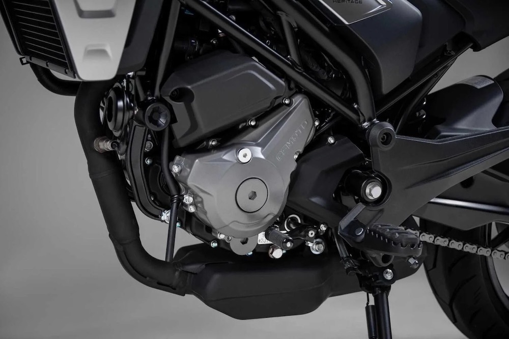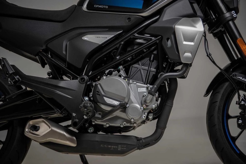 CFMoto 300CL-X Heritage (2023) juga model paling kecil dalam famili CL-X di Eropah dan kini sudah berada di bilik pameran. Model ini dijana enjin 4-lejang silinder tunggal 292cc penyejukan cecair dengan teknologi suntikan bahan api (FI) berkuasa 27.91hp @ 8,750rpm dan tork 25Nm @ 7,000rpm.