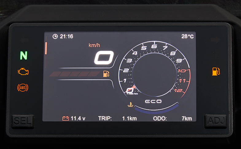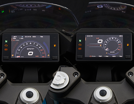 Kluster instrumen menggunakan paparan TFT warna penuh dengan dua rekaan, Sport dan Rain. Setakat ini, cuma ada satu pilihan warna ditawarkan, Nebula Black (hitam).