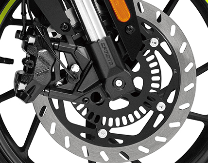 Kapasiti tangki mampu mengisi 12 liter petrol dengan berat kerb 165kg dan tinggi pelana 780mm. Sistem suspensi disokong fork terbalik (USD) di depan dan monoshock (belakang) dengan brek cakera tunggal untuk kedua-dua roda.