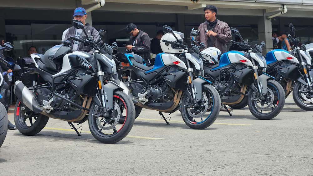 CFMoto memilih Filipina sebagai pasaran pertama Asean dan luar China untuk menawarkan naked bike 450NK (2023) yang hadir dalam tiga warna pilihan: Zephyr Blue (biru), Nebula Black (hitam) dan Nebula White (putih).