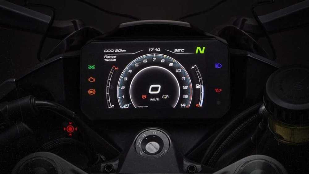 Panel meter jenis digital TFT 5 inci berserta konektiviti Bluetooth menerusi aplikasi CFMoto Ride App untuk akses sistem navigasi, masa lap dan sejarah tunggangan.