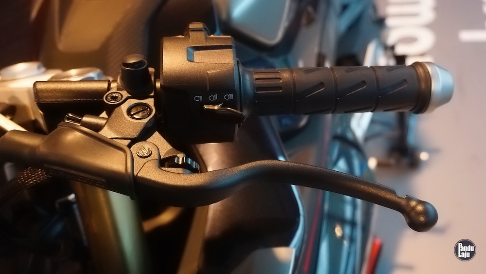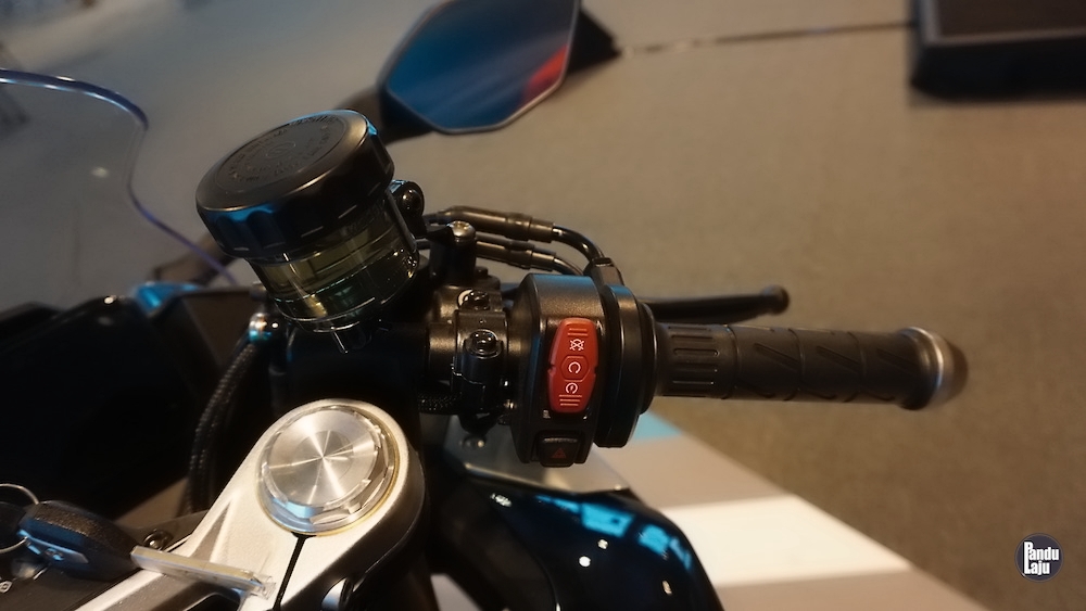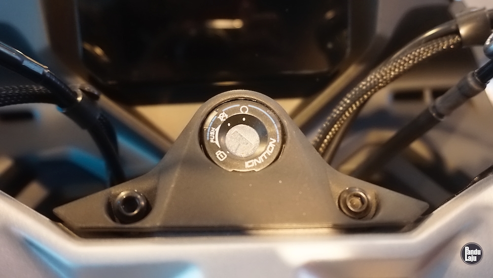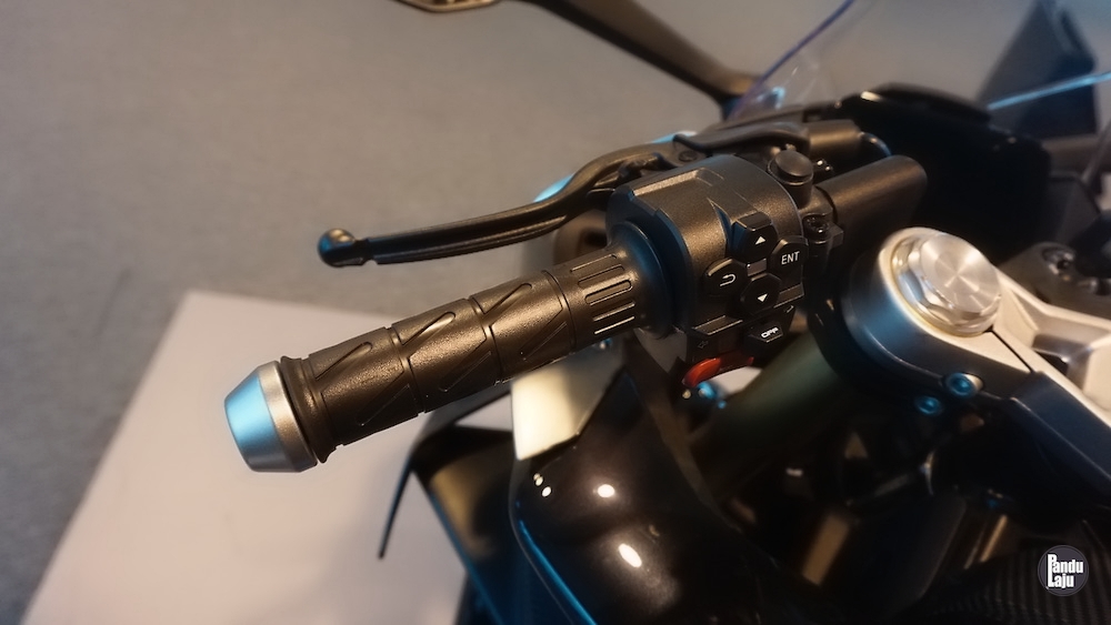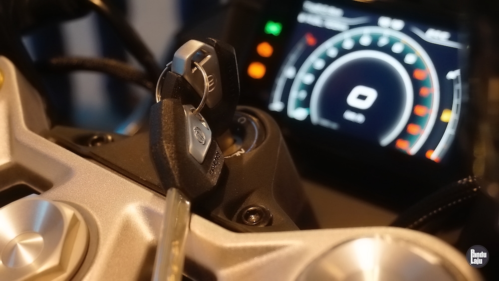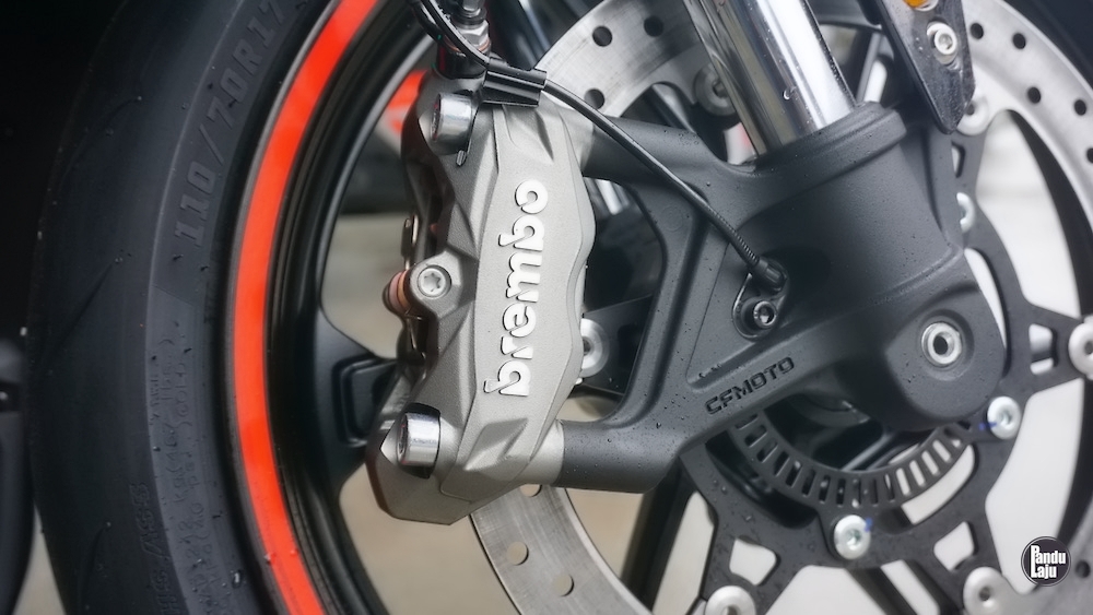 Panel meter jenis digital TFT 5 inci berserta konektiviti Bluetooth menerusi aplikasi CFMoto Ride App untuk akses sistem navigasi, masa lap dan sejarah tunggangan.
