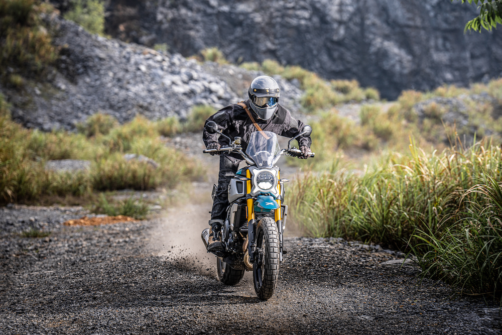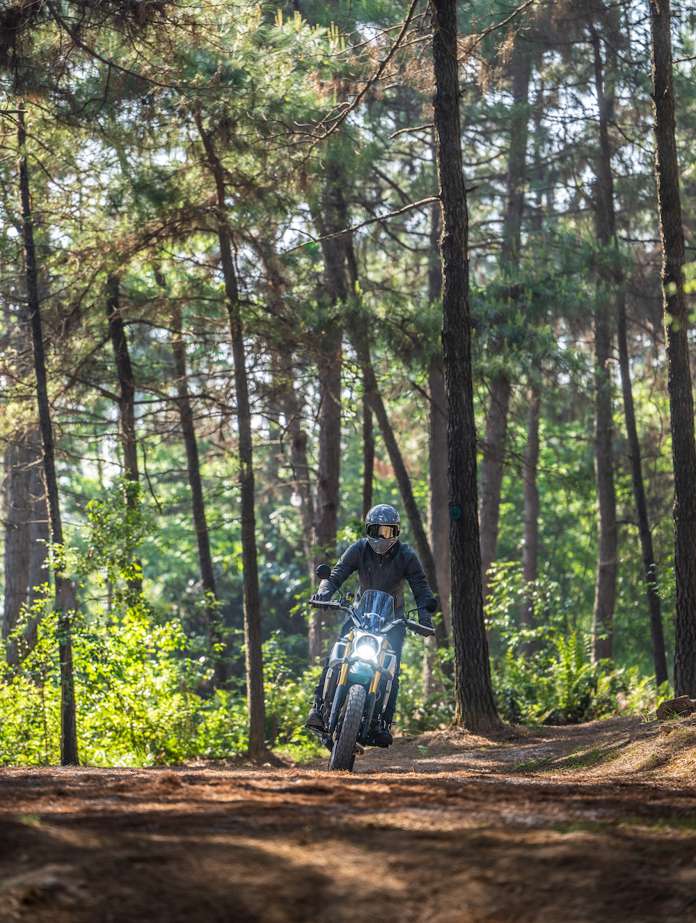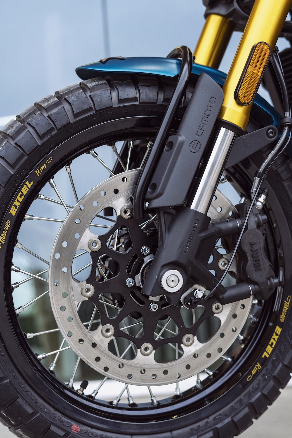 Rim aloi 18 inci dan tayar 110/80 di depan, dan rim 17 inci dengan tayar 170/60 di belakang. Jenama tayar Pirelli Scorpion Rally STR.