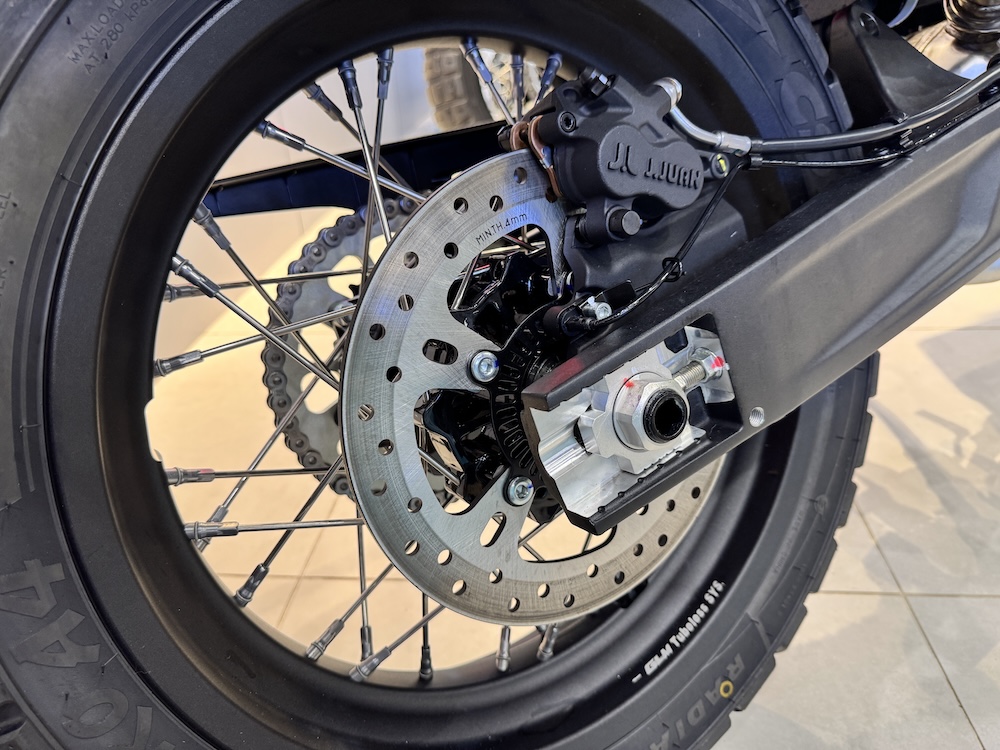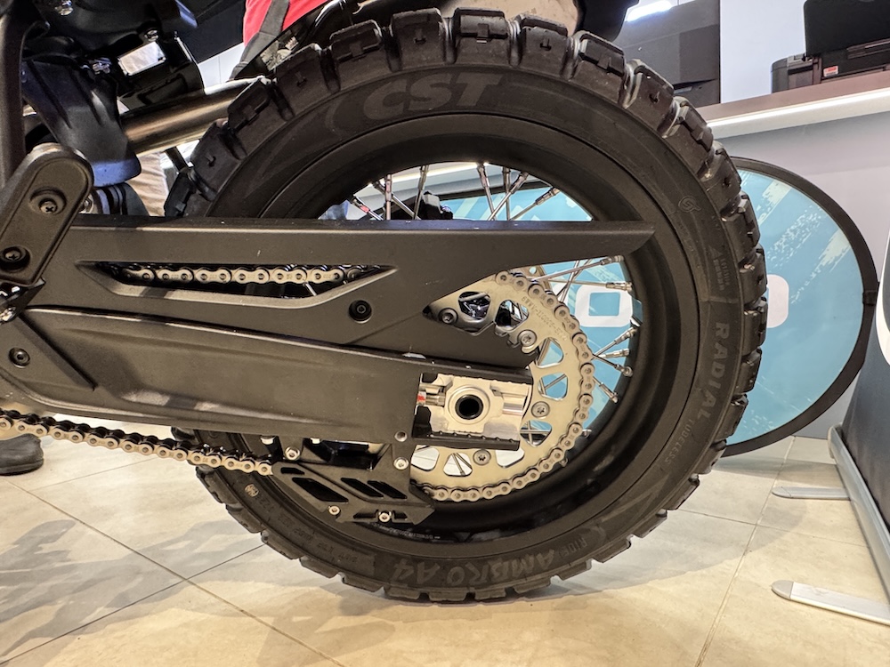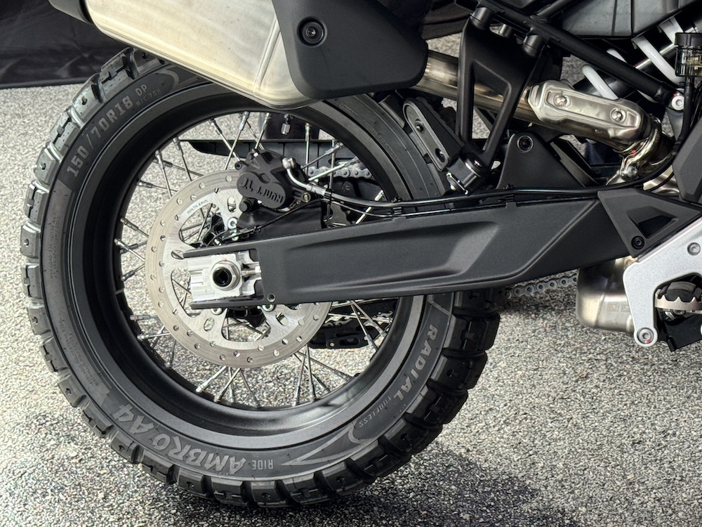 - Rim 21 inci dengan tayar 90/90 di depan, dan 18 inci dengan tayar 150/70 (belakang).