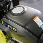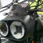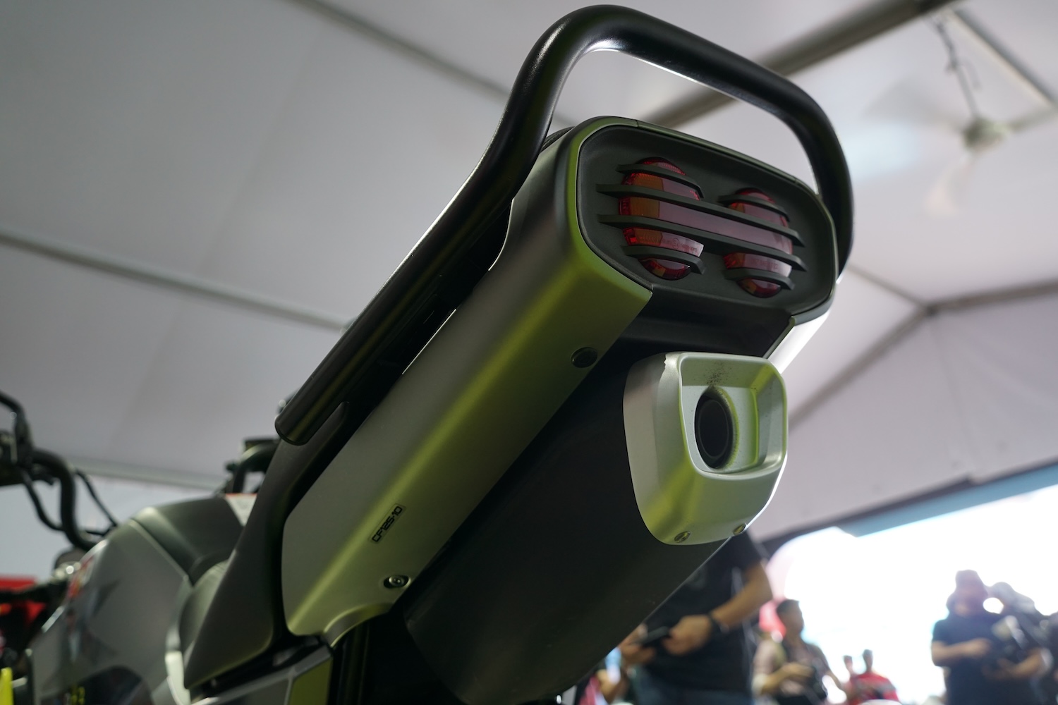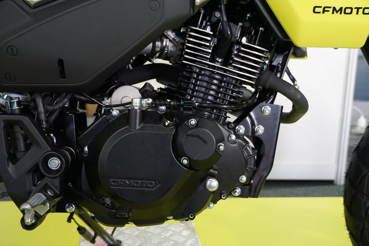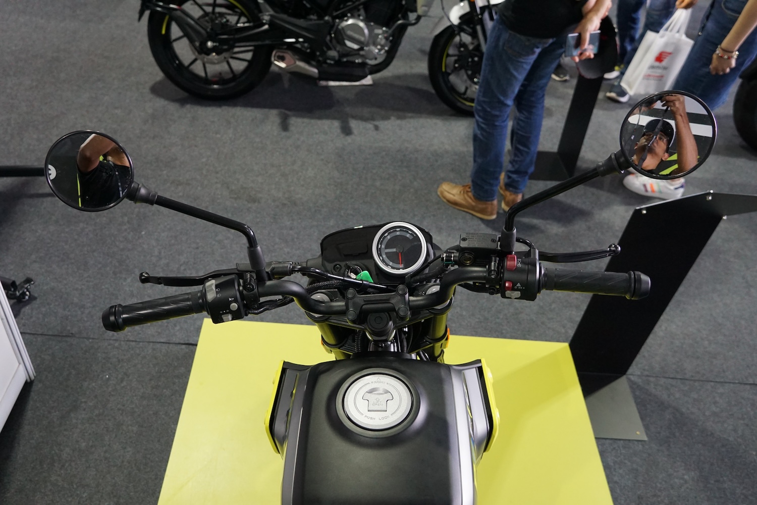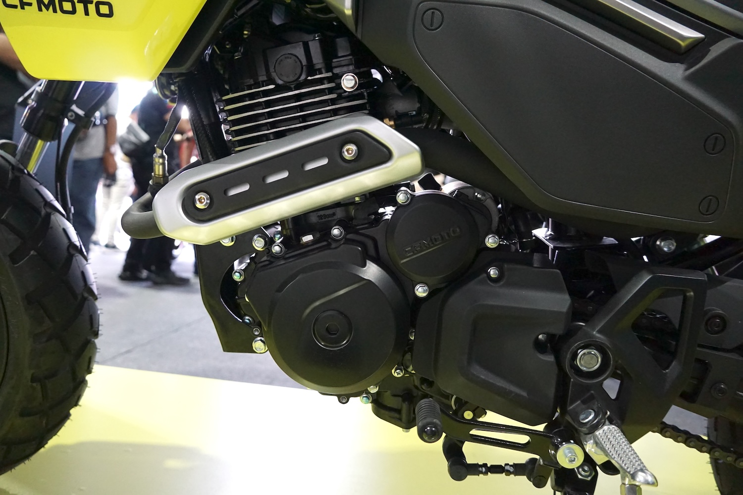 Malah model dengan rekabentuk scrambler retro mini itu ditempatkan di ruang pameran CFMoto di Litar Antarabangsa Petronas Sepang.