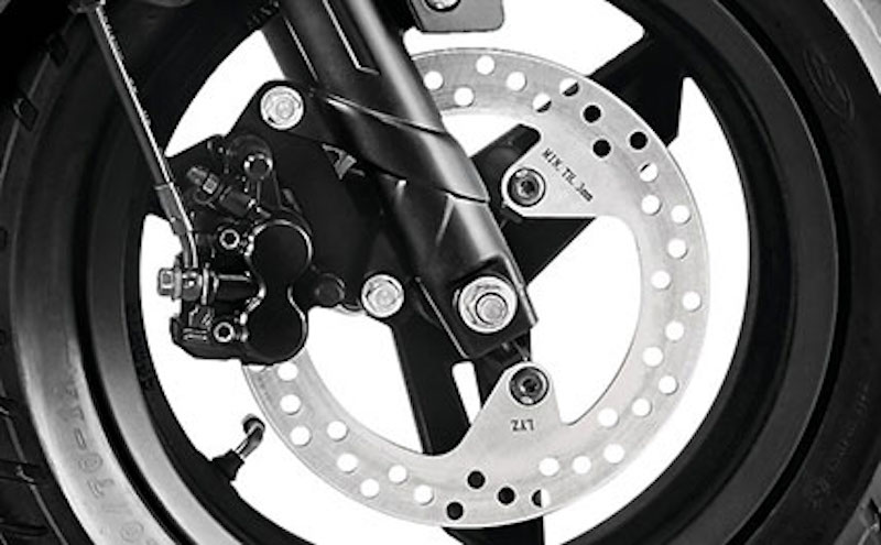 - Rim aloi 12 inci dibalut tayar saiz 120/70 (depan) dan 130/70 (belakang).
