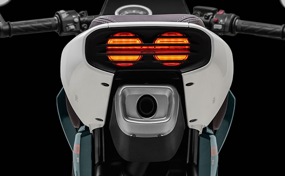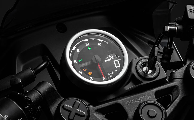 Panel meter bulat dengan paparan kombinasi digital dan analog. Pelana pula jenis bertingkat. Pemegang plat belakang diposisi pada madgad belakang dengan lampu signal belok.