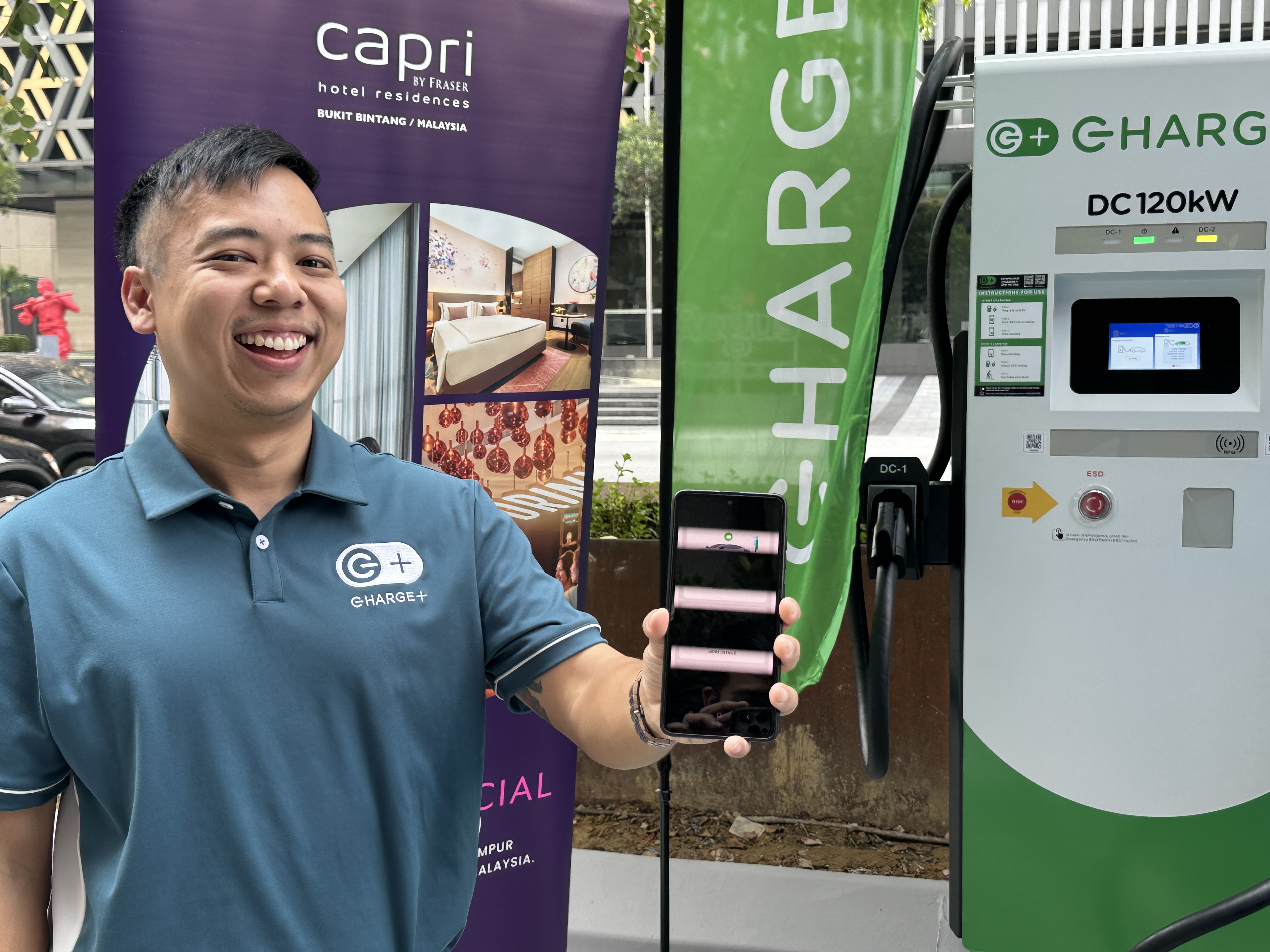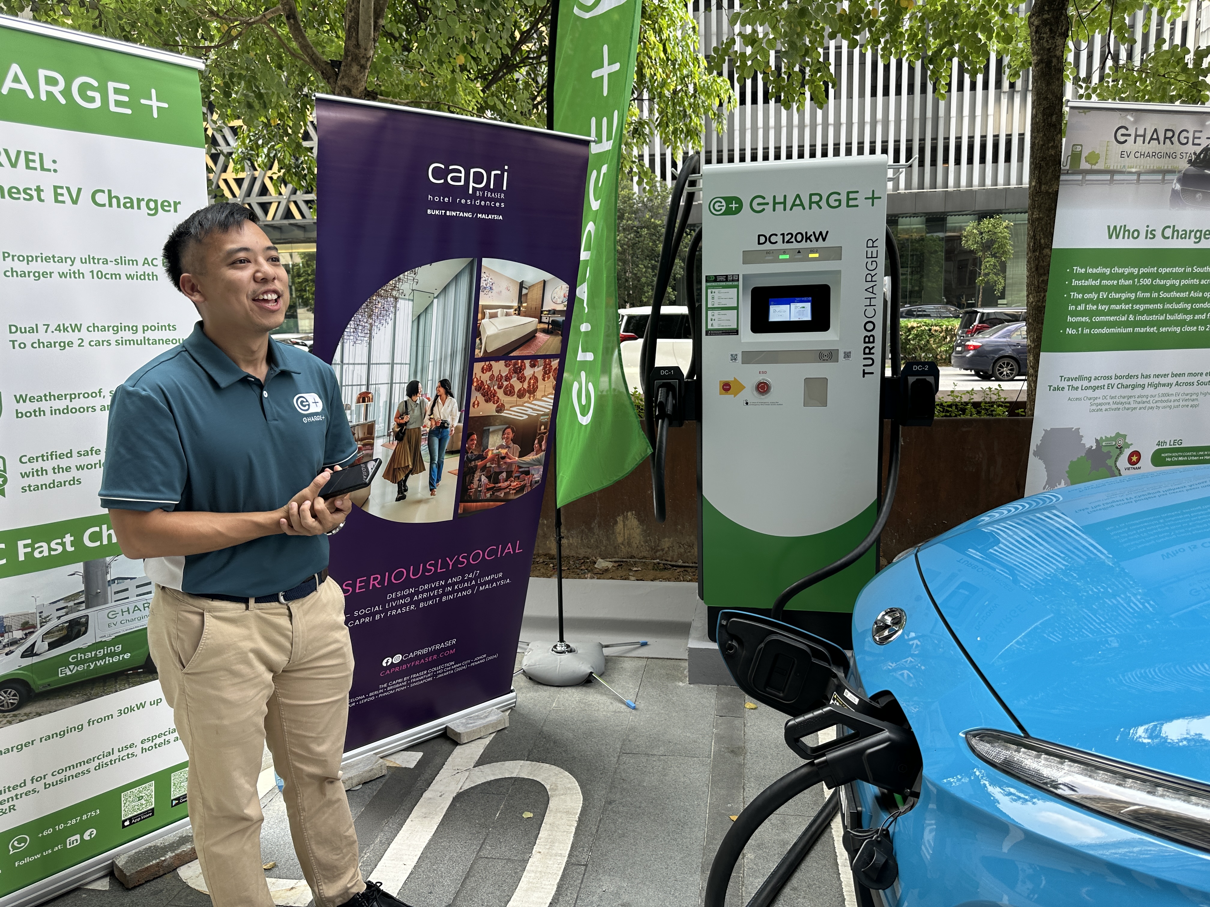 PENGENDALI pengecasan EV dari Singapura, Charge+ melancarkan pengecas DC 120kW di Capri by Fraser, Bukit Bintang, Kuala Lumpur.