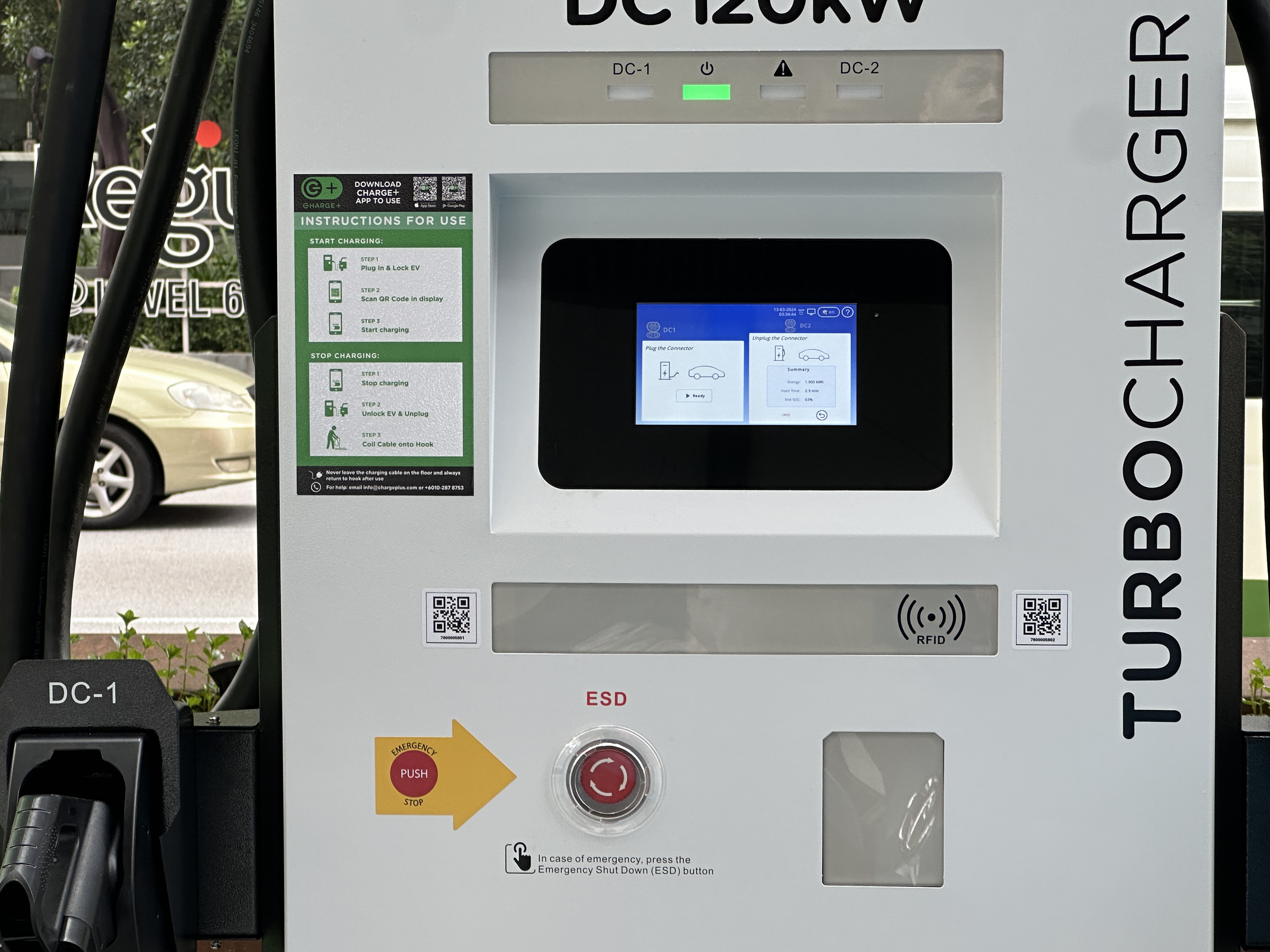 Tambahan kepada pengecas Charge+ EV di lokasi ini ialah unit Exicom bagi julat Harmony Direct dengan dua penyambung CCS2, yang membekalkan dua EV serentak pada kapasiti hingga 60kW setiap satu atau hingga output 120kW penuh apabila hanya satu nozel digunakan.