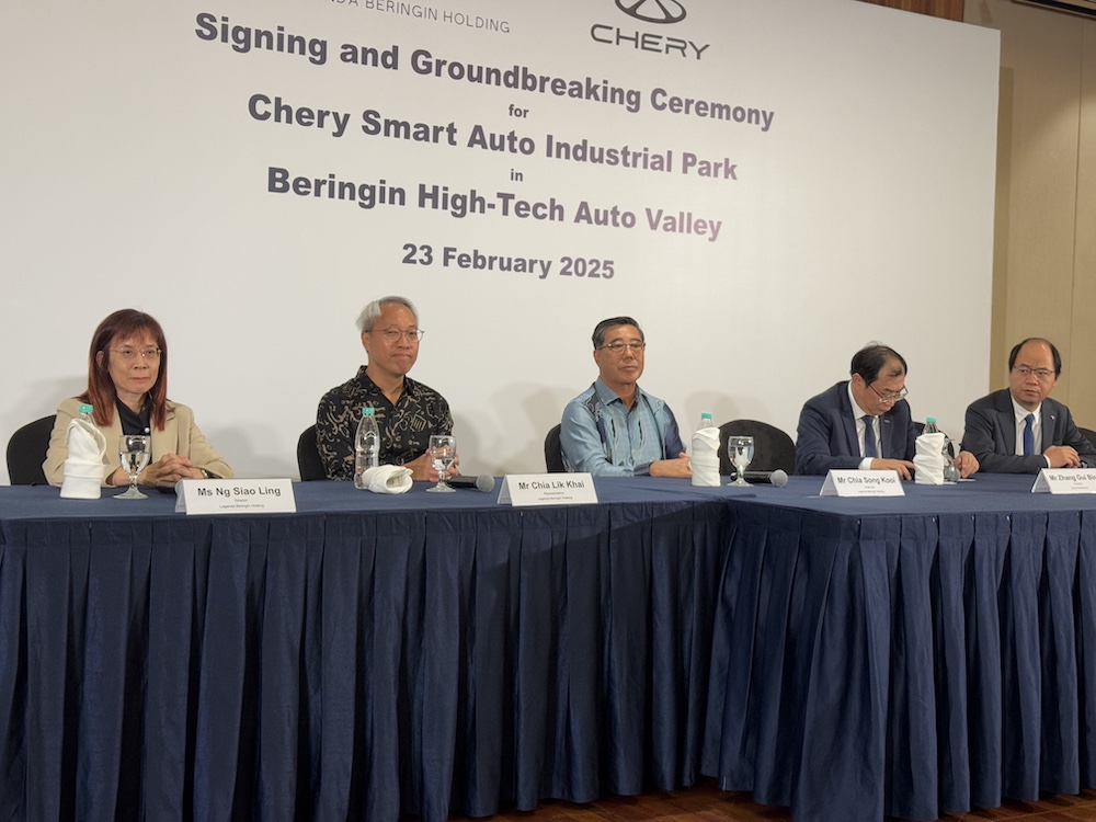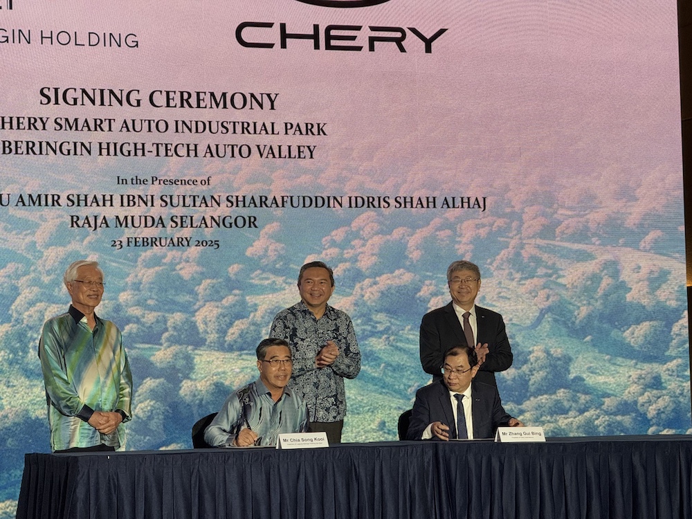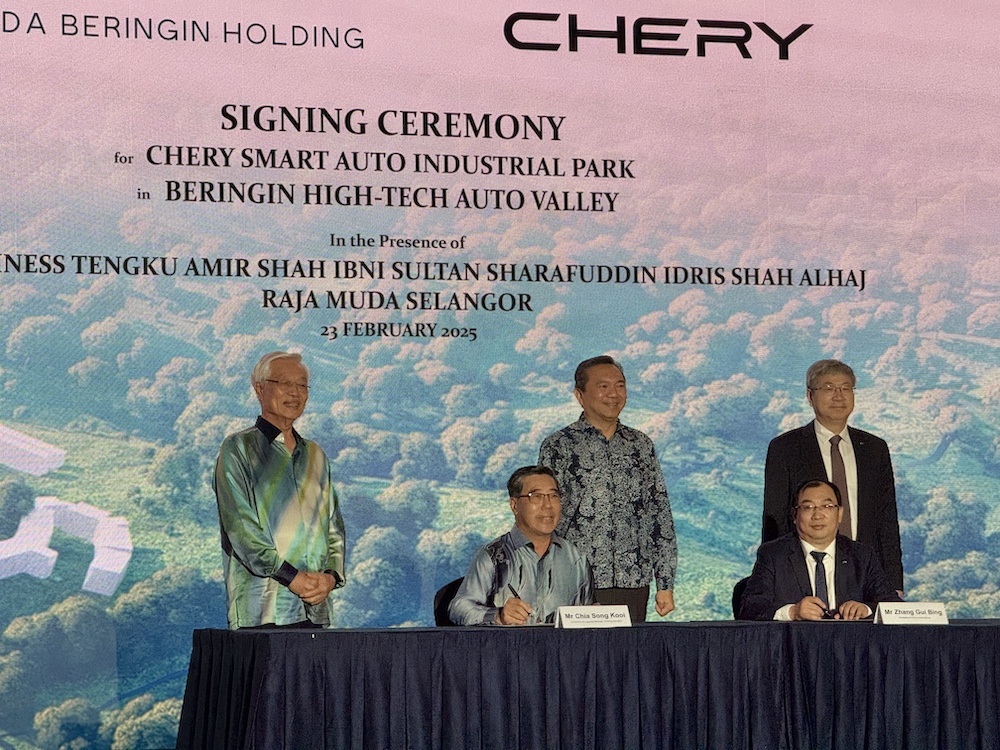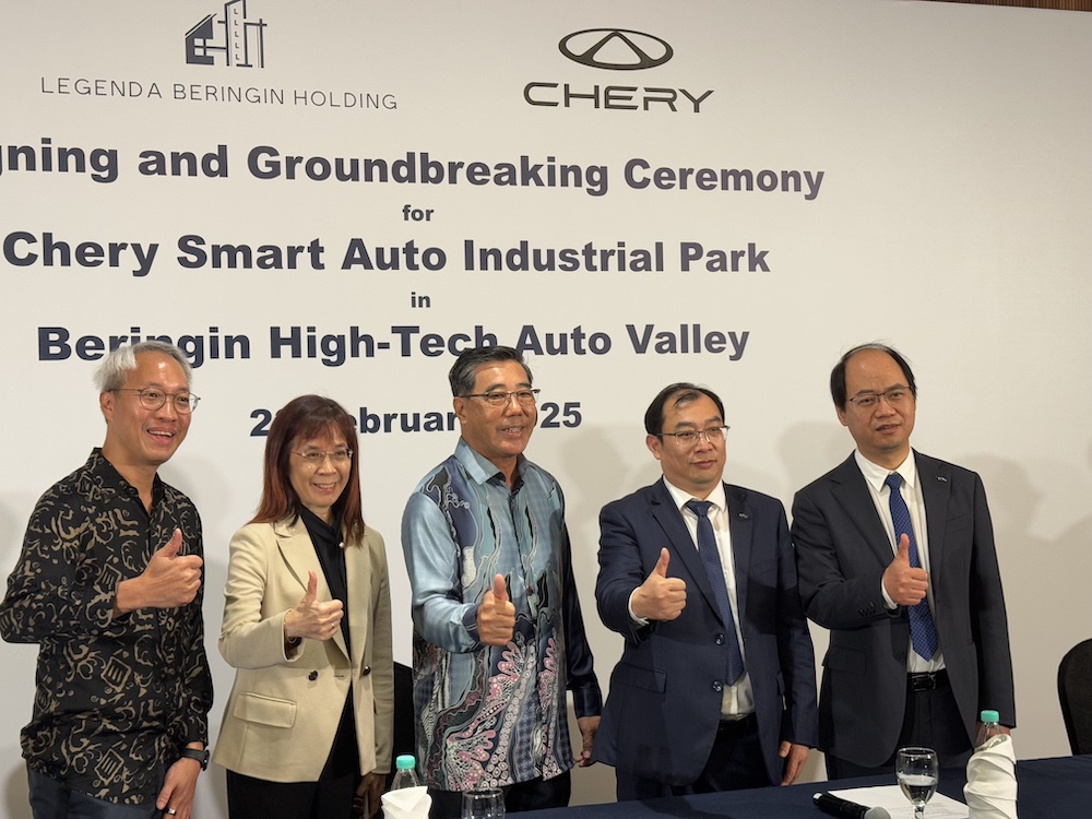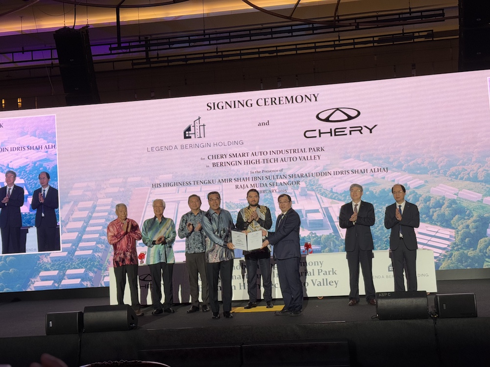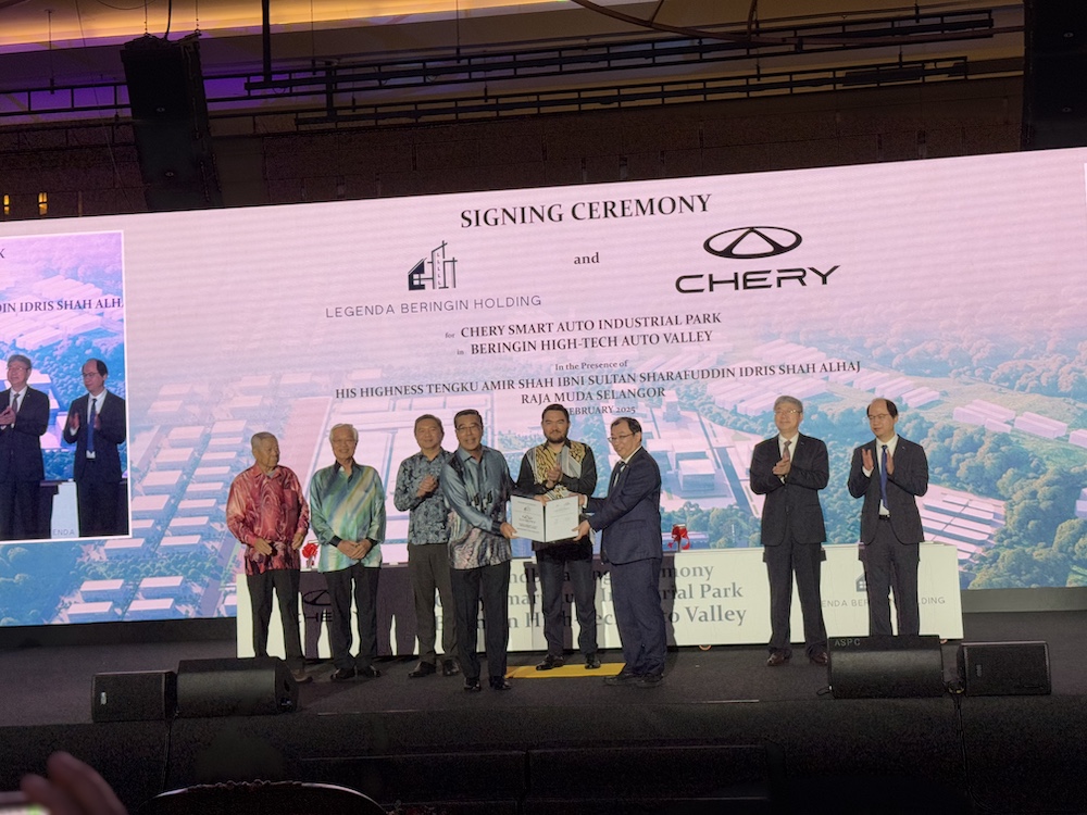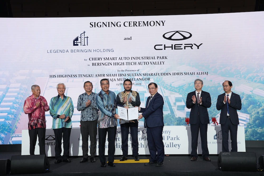 LEGENDA Beringin Holding Sdn Bhd dan Chery Corporate Malaysia Sdn Bhd hari ini menandatangani perjanjian serta merasmikan majlis pecah tanah untuk pembinaan fasiliti pintar Chery Smart Auto Industrial Park di Beringin High-Tech Auto Valley (Beringin HTA Valley), Hulu Selangor.