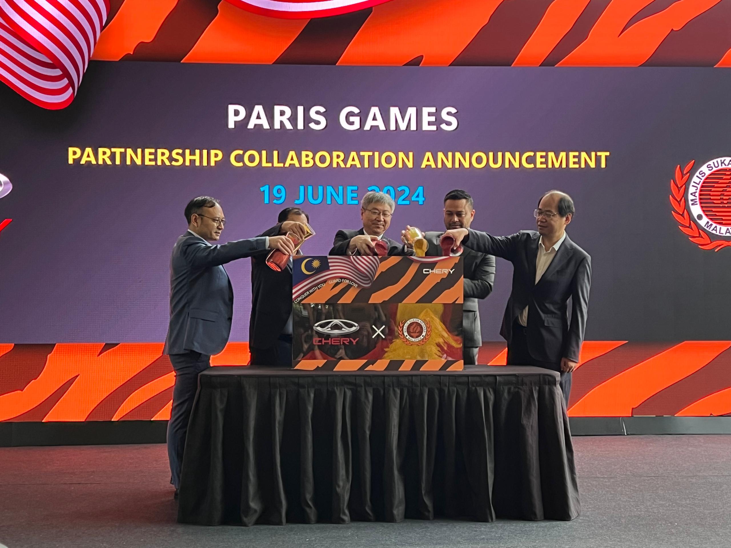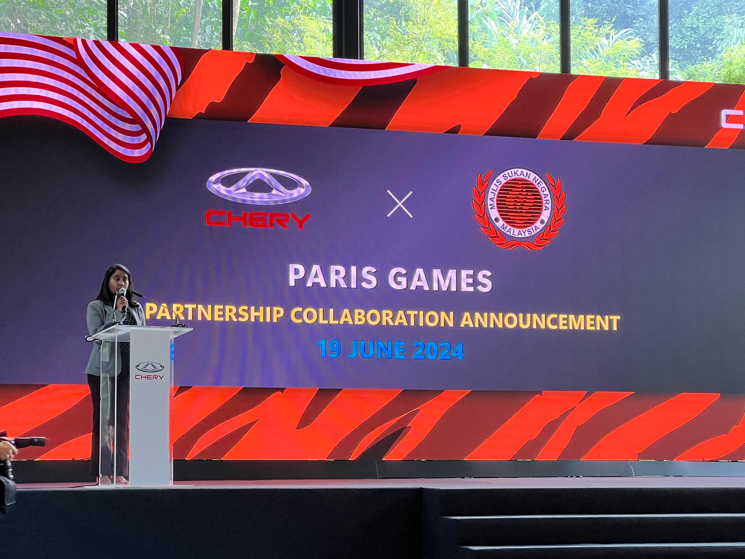 CHERY Malaysia mengumumkan kolaborasi perkongsian dengan Majlis Sukan Negara (MSN) sebagai tanda sokongan penuh kepada pasukan atlet negara ke temasya Sukan Olimpik Paris 2024, bulan depan.