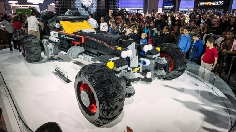 LEGO Batmobile ditayangkan kepada umum pada 14 Januari lalu dengan dihadiri kanak-kanak dari komuniti Cody Rouge di Detroit sempena Pameran Auto Antarabangsa Amerika Utara (NAIAS) 2017. Kereta rasmi Batman itu tampil dengan panjang – 5.2 meter, tinggi – 2.1 meter dan lebar – 2.8 meter. Set tayar yang dipasang adalah seberat lebih 45kg, manakala berat frem dalaman aluminium ialah 128kg, menjadikan berat keseluruhan kenderaan, 769kg.