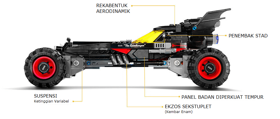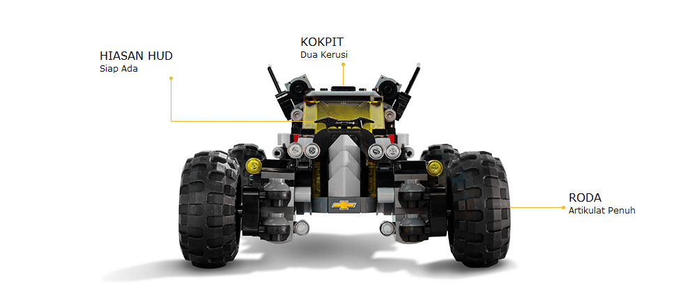 Mari kita lihat apa kata figura mini lain tentang LEGO Batmobile. Apapun ingat, semua spesifikasi tersebut ialah fiksi semata-mata dan LEGO Batmobile tidak dijual di mana-mana bilik pameran Chevrolet.