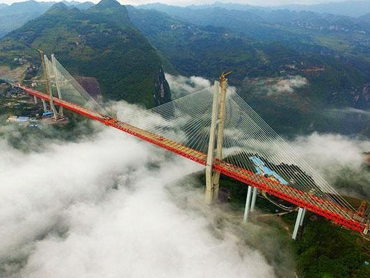 Jambatan Beipanjiang menghubungkan wilayah Guizhou dan Yunnan, dan dijangka memendekkan masa perjalanan darat dari Liupanshui ke Xuianwei daripada lima jam kepada dua jam. Jambatan empat lorong itu didirikan sepanjang 1,341 meter pada ketinggian 564 meter merentasi Sungai Beipan dengan meletakkan ia sebagai jambatan tertinggi di dunia walaupun bukan terpanjang.