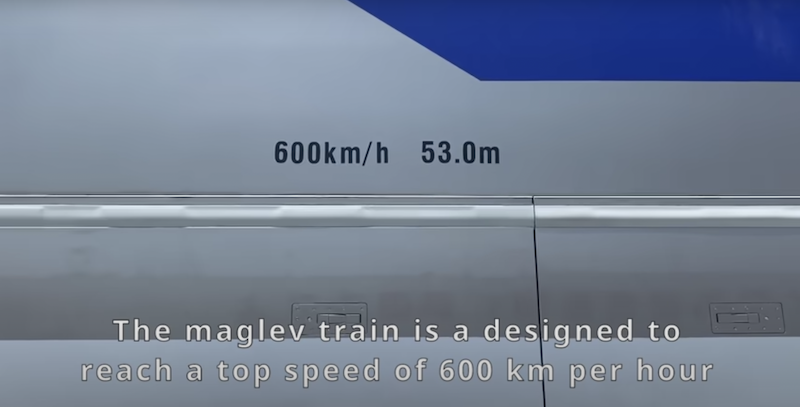 Kereta api laju itu kelihatan seakan ‘terapung’ disebabkan kuasa elektromagnetik yang membantunya meluncur atas trek.