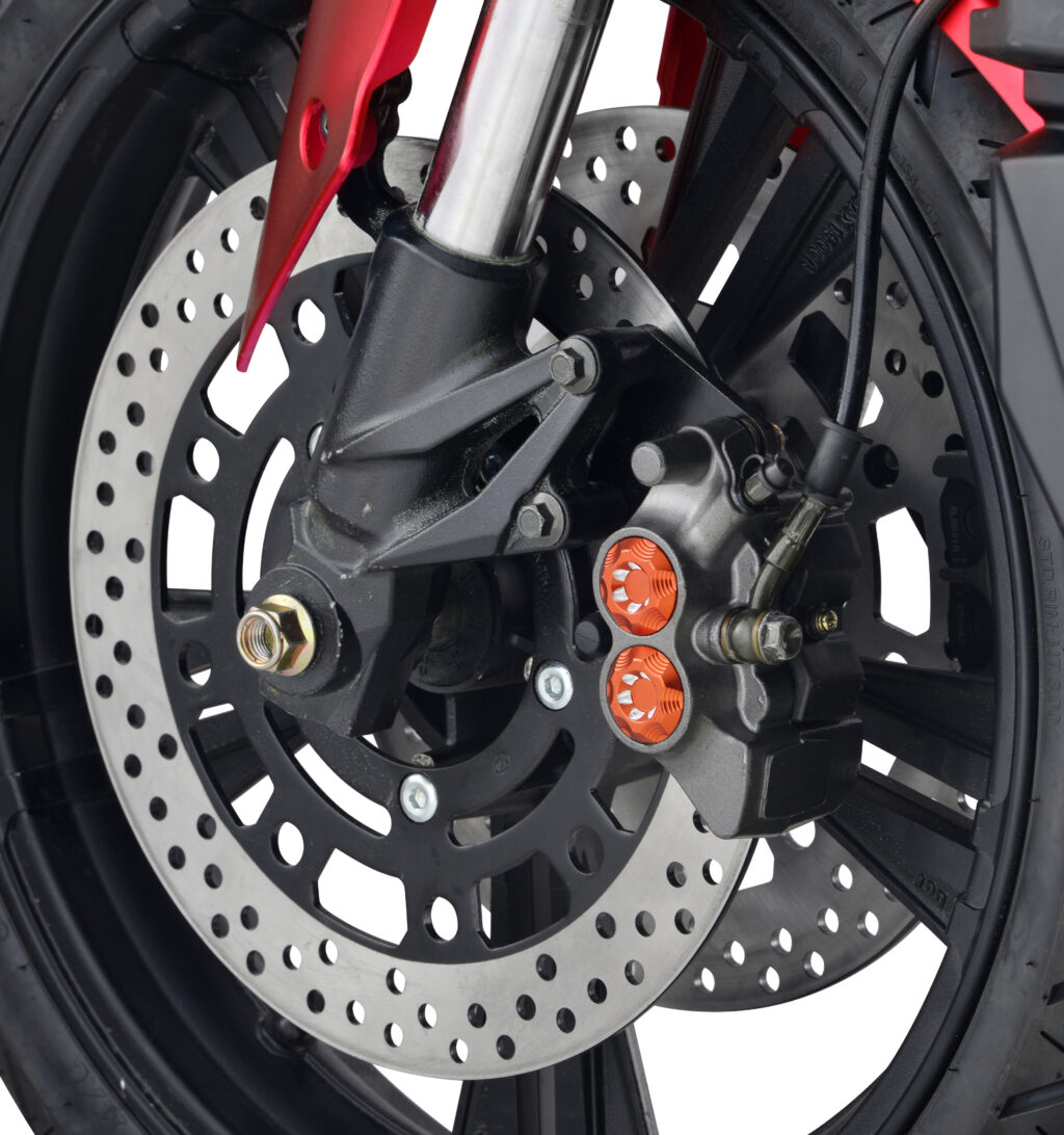 - Sistem brek cakera kembar di depan dan cakera tunggal di belakang dengan Sistem Brek Anti-Kunci Elektrik (EABS)
