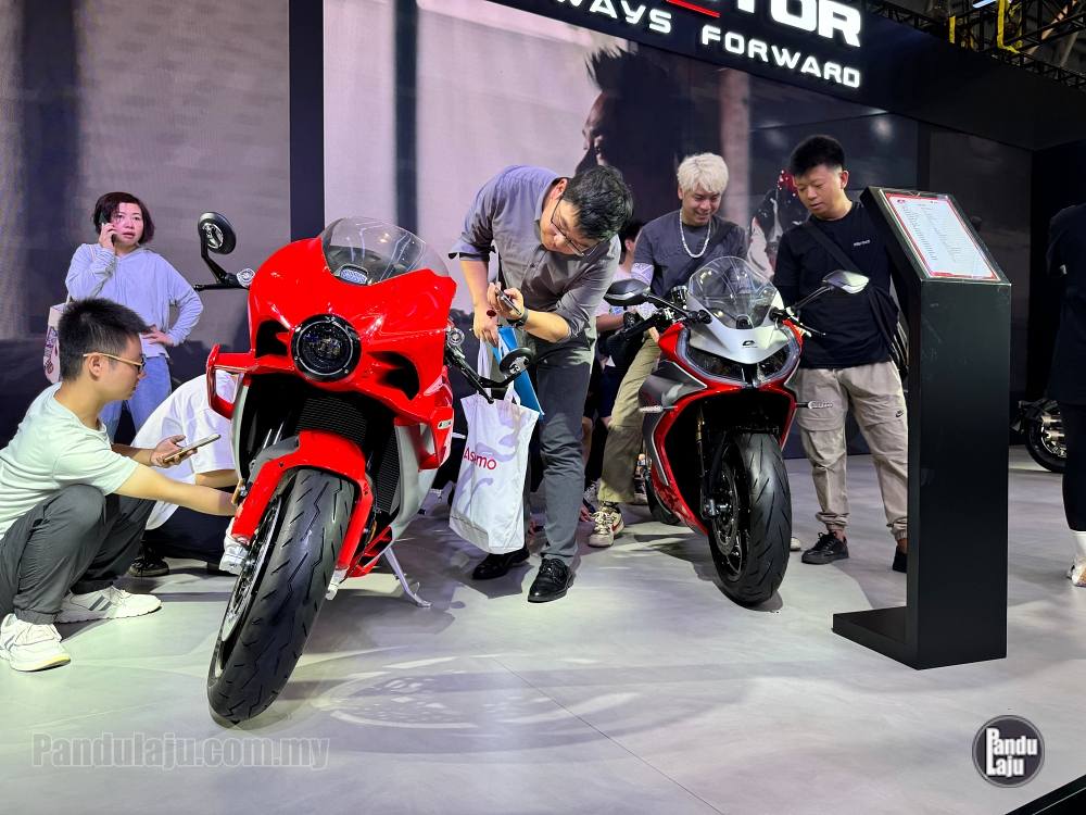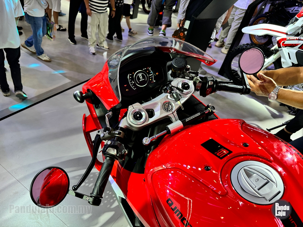 SEPERTI apa dijangka, QJMotor mempamerkan sportbike retro mirip MV Agusta Superveloce di Pameran Dagangan Antarabangsa Motosikal China (CIMA) 2024 di Chongqing, China.
