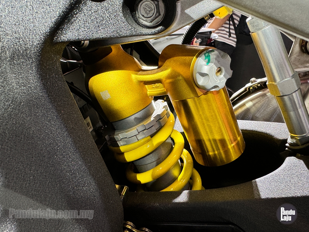 - Sistem suspensi fork terbalik (USD) Marzocchi boleh laras di depan, dan monoshock boleh laras (belakang).