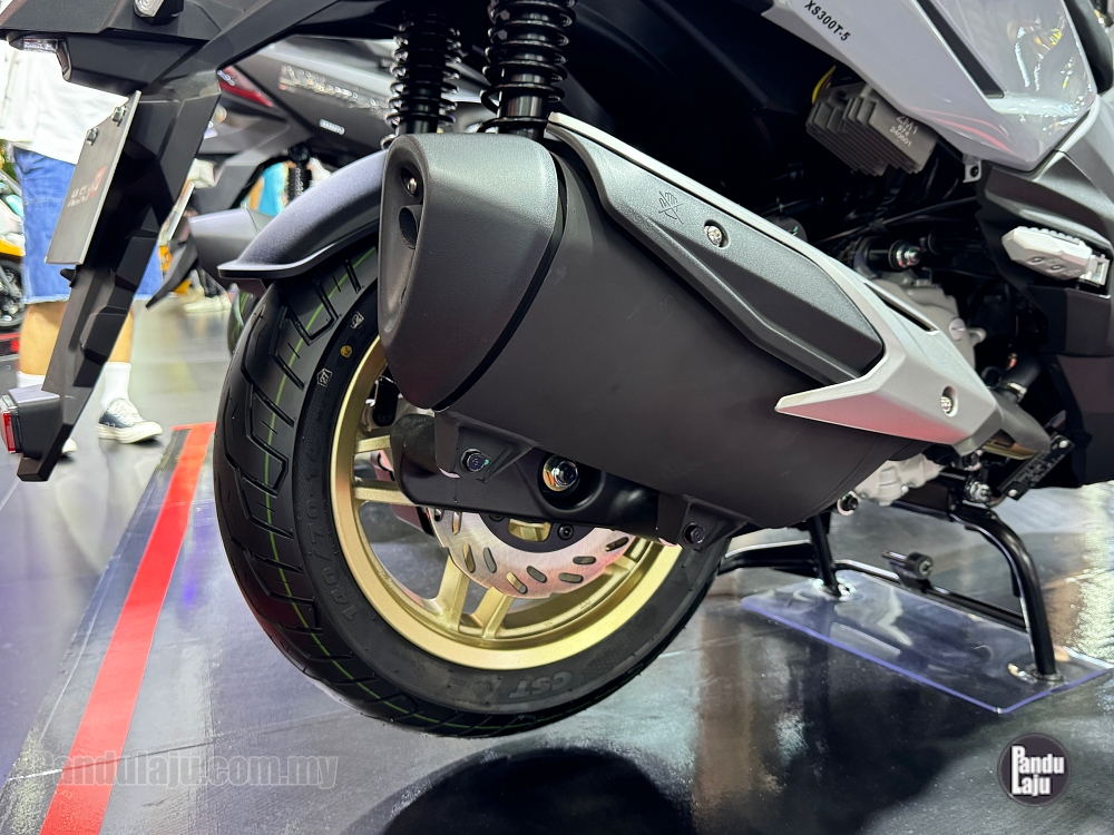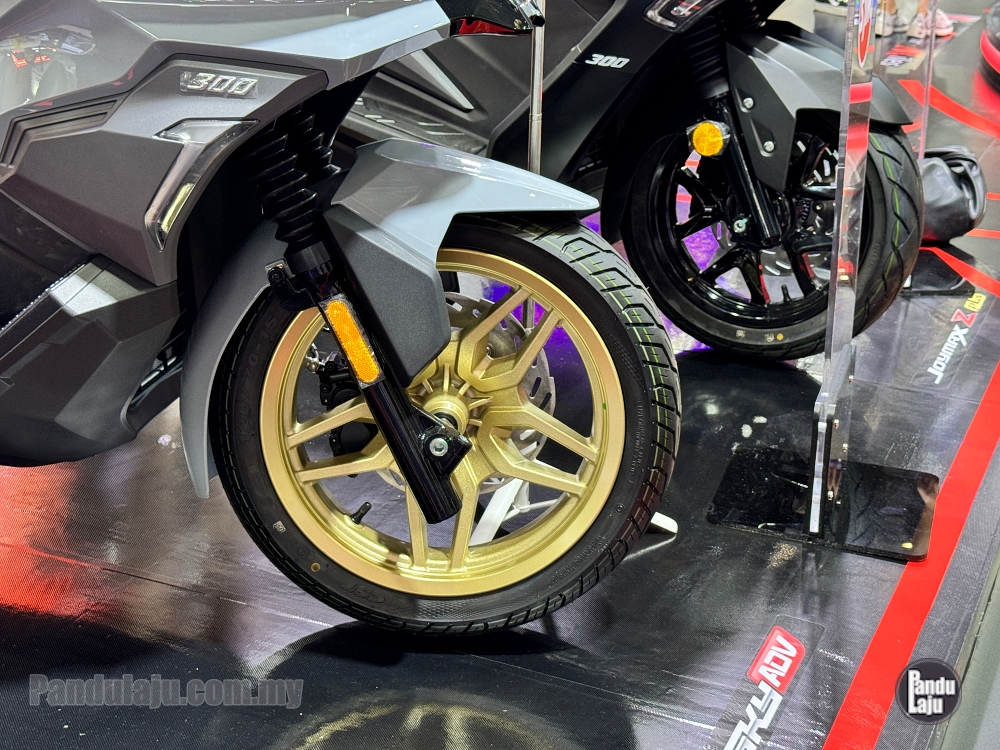 - Rim aloi 15 inci dengan tayar 120/70 di depan, dan rim 14 inci dengan tayar 140/70 (belakang).