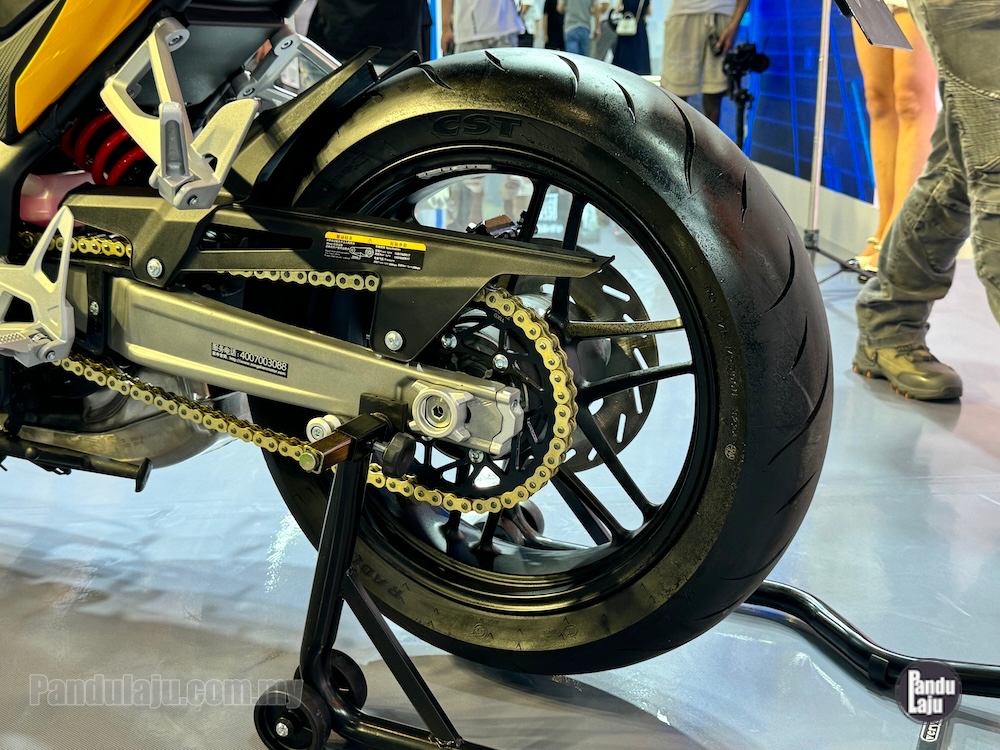 - Rim aloi 17 inci dengan tayar 120/70 (depan), dan 160/60 (belakang).