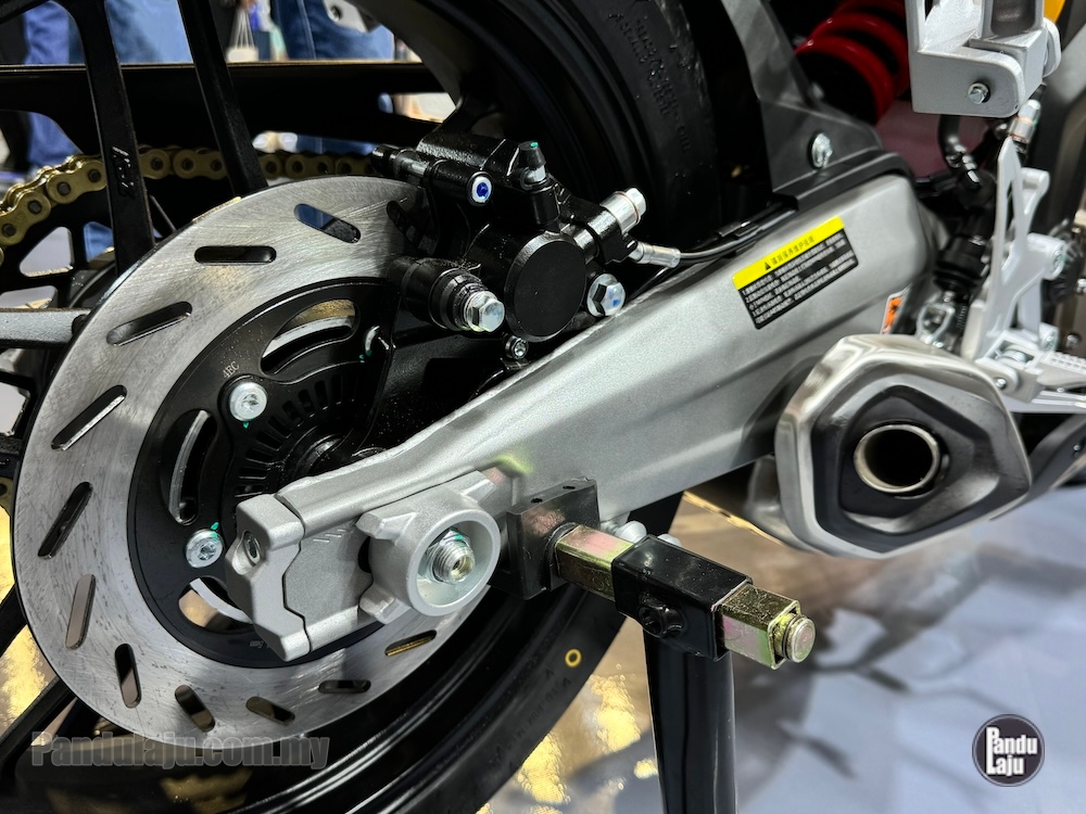 - Sistem brek cakera tunggal di depan dan belakang dengan Sistem Brek Anti-Kunci (ABS) dwi-saluran dan Sistem Kawalan Traksi (TCS).