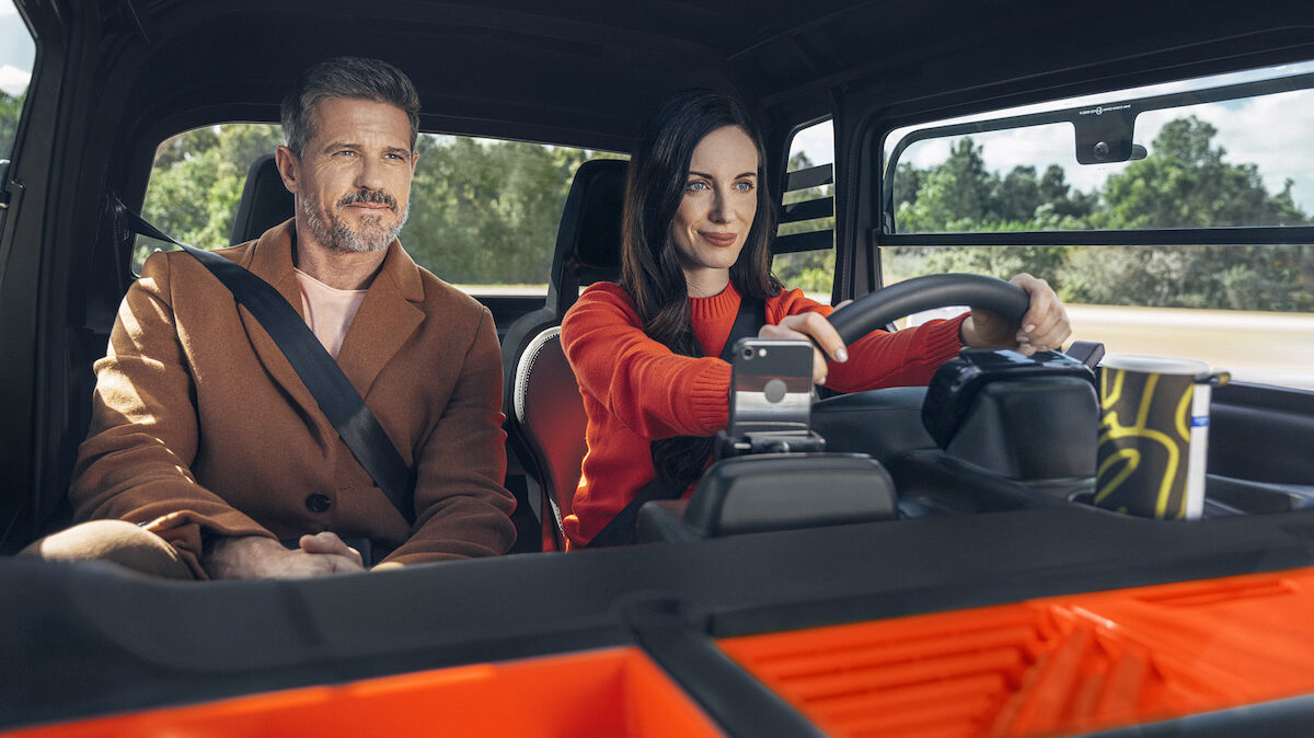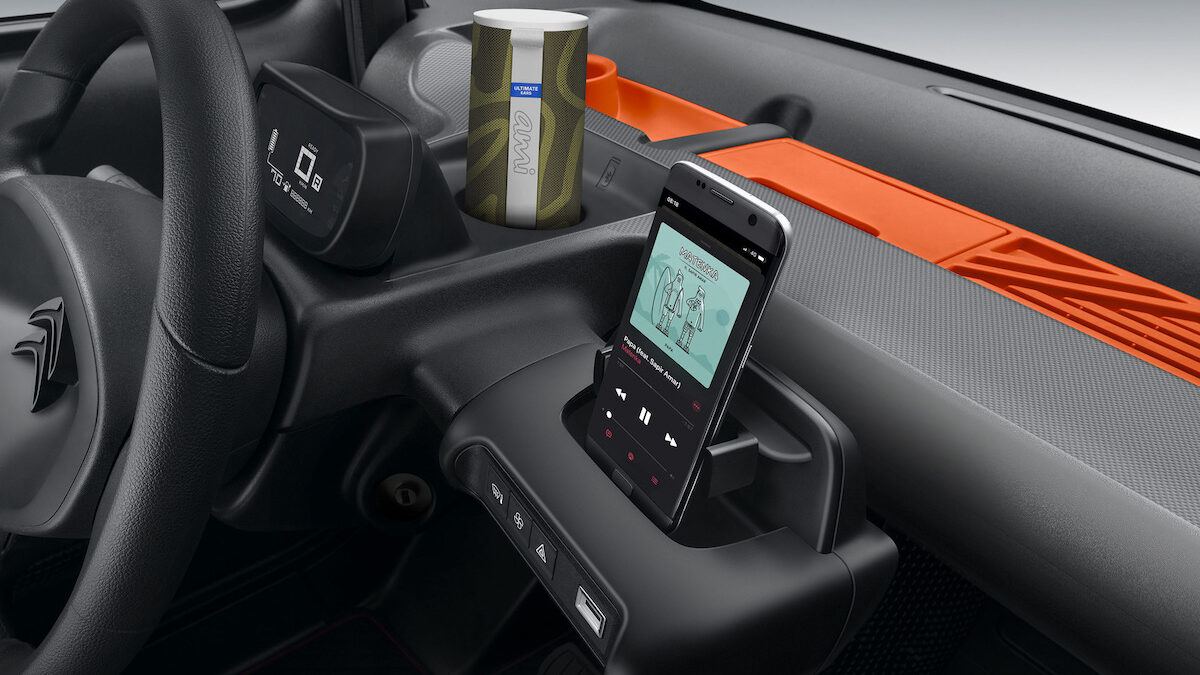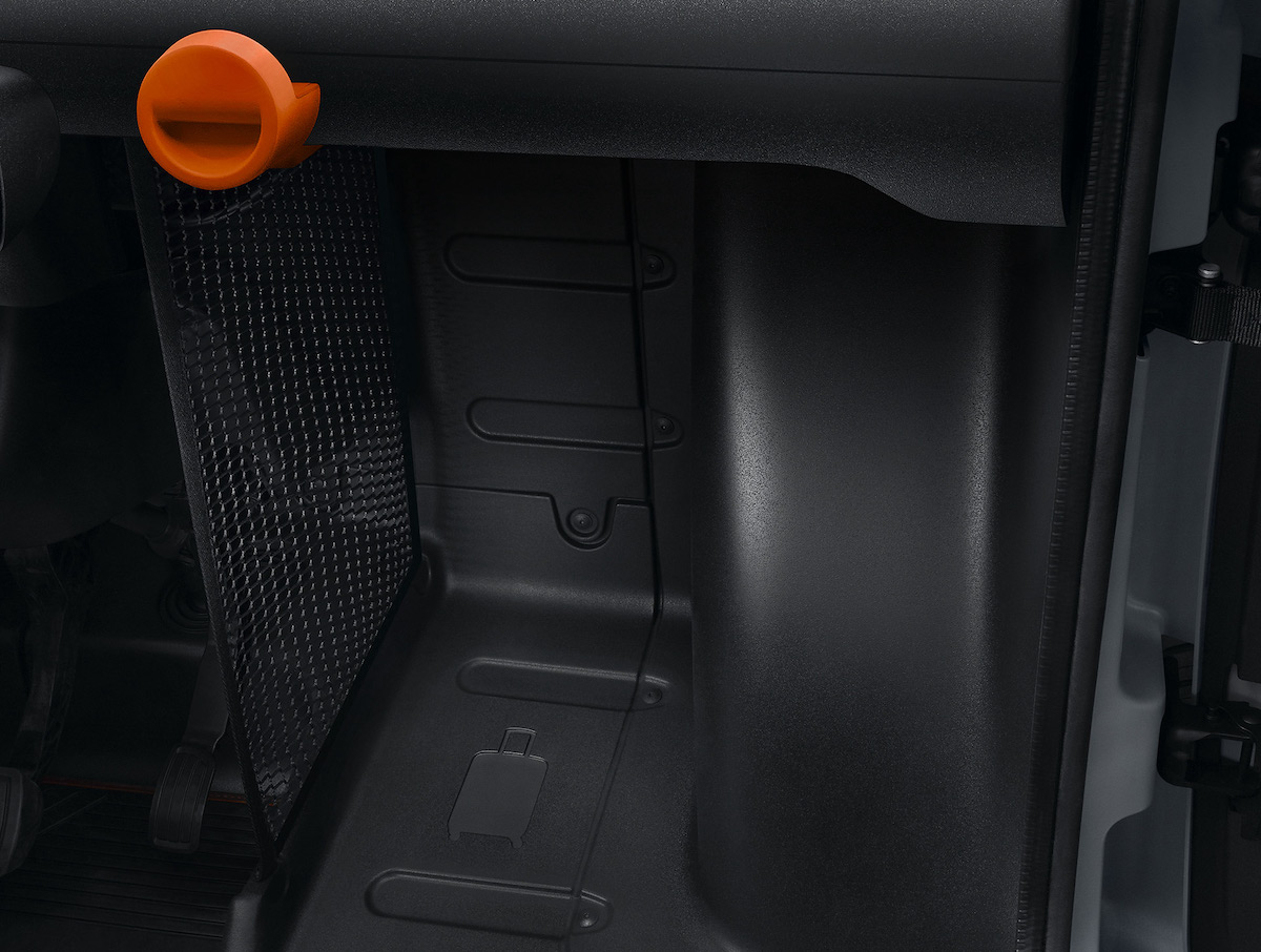 - Ruang kabin pula kelihatan standard seperti kereta biasa, termasuk ruang but. Tiada unit infotainment disediakan (mungkin untuk mengelak gangguan ketika memandu), tetapi digantikan komprtmen telefon pintar, termasukm port USB di tengah papan pemuka.
