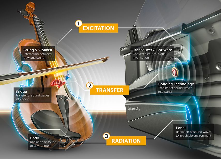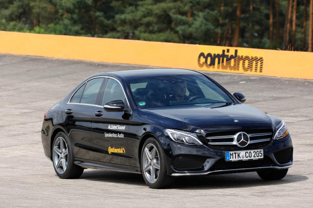 Continental menggantikan pembesar suara konvensional pada sebuah Mercedes C-Class standard dengan aktuator bunyi yang menghasilkan bunyi menerusi getaran permukaan berbeza dalam kenderaan.