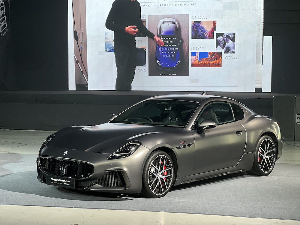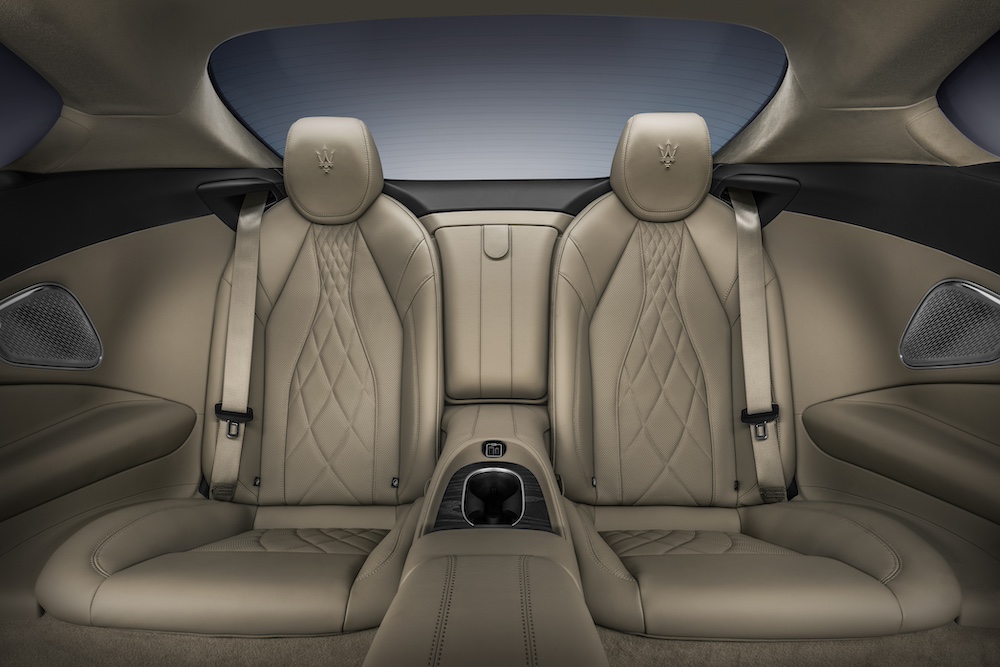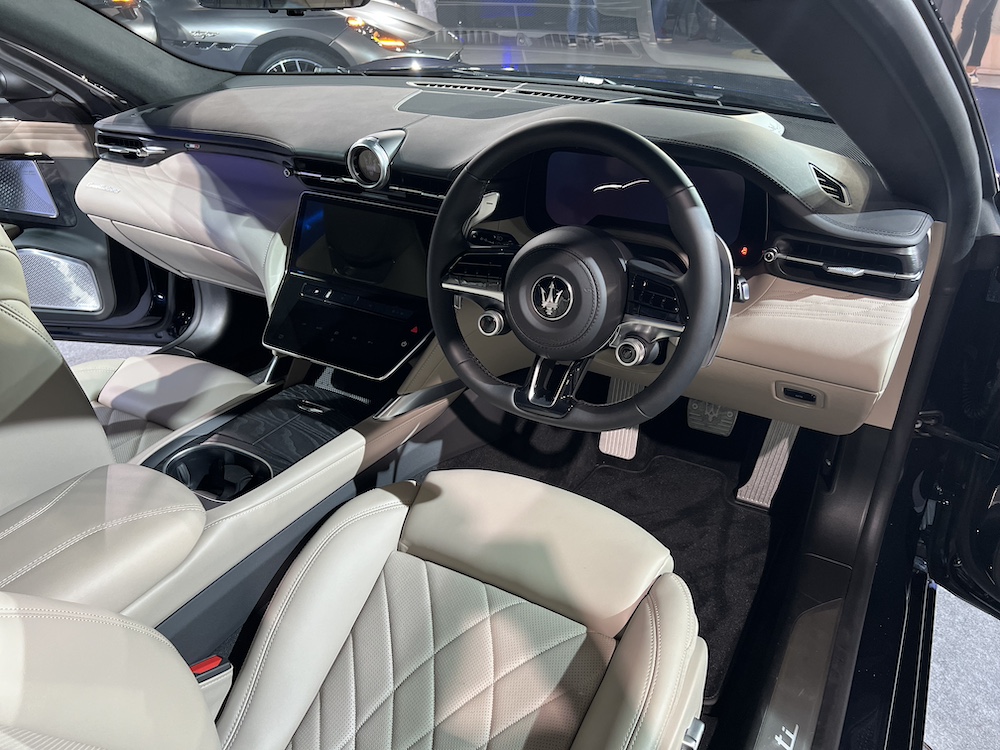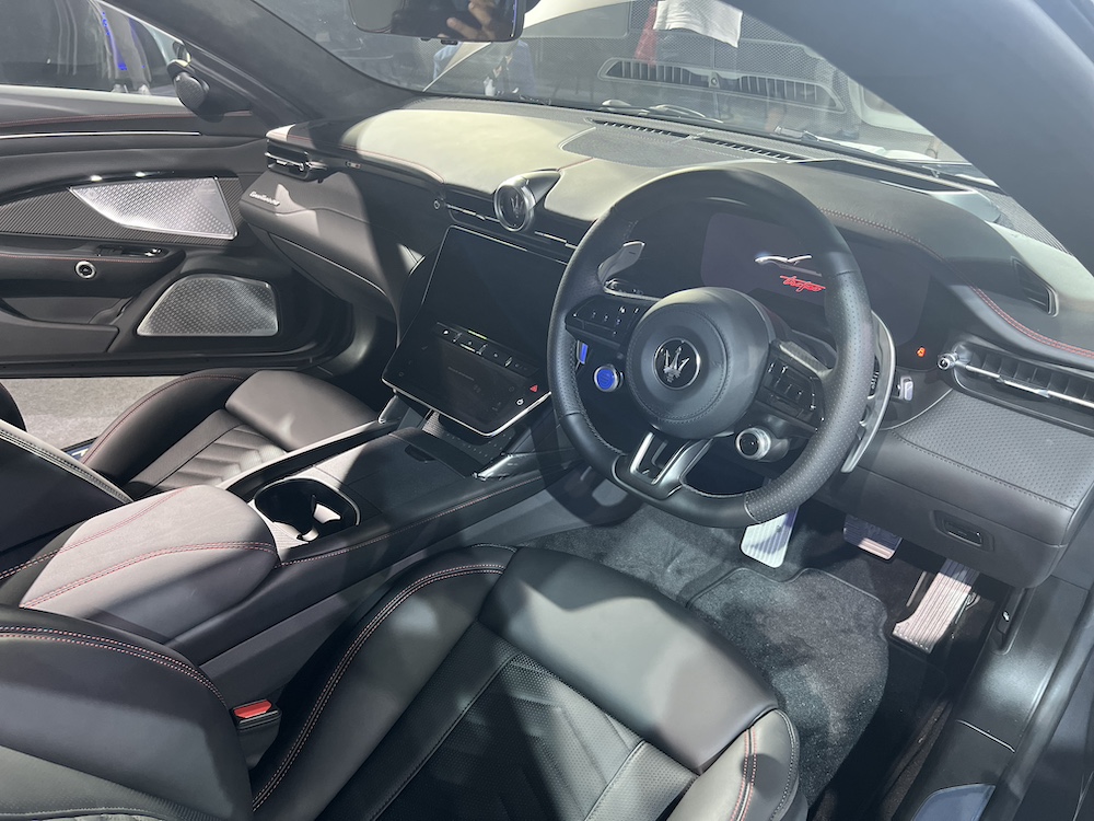 - Mengekalkan imej klasik Maserati dengan bonet panjang dan tengah badan bersilang empat fender, manakala lengkung garis bumbung menekankan lekuk pilar dengan lencana ‘Trident’ yang ikonik