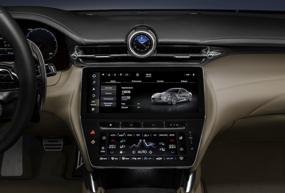 - Ciri dalaman model dilengkapi ciri inovatif seperti unit infotainment dengan sistem multimedia Maserati Intelligent Assistant (MIA) terkini bersama antaramuka skrin sentuh bersepadu, jam digital, paparan dongak (HUD) sebagai opsyen, dan sistem audio Sonus faber.