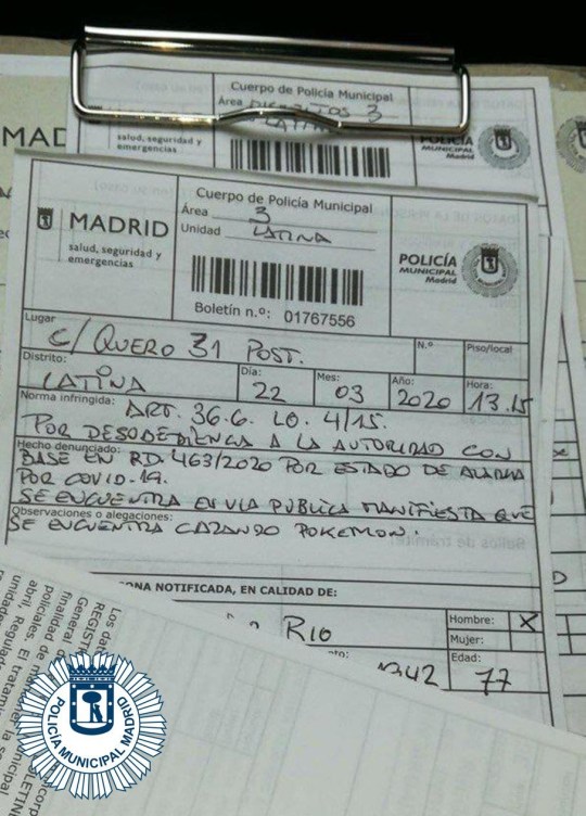 Pesalah ialah seorang lelaki 77 tahun yang ditahan di daerah Latina, Madrid pada Ahad lalu (22 Mac 2020), jam 1.15 petang. Percaya atau tidak, apa yang diberikan polis ketika ditahan adalah dia sedang memburu Pokemon.