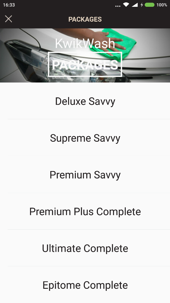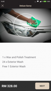 Menu ini adalah khas buat anda yang mahu mendapatkan pakej cucian khas supaya tidak perlu lagi membuat tempahan sama setiap kali mahu mencuci kereta. Apa yang pasti, lebih menjimatkan. Misalnya, pakej paling murah Deluxe Savvy berharga RM328, di mana anda akan mendapat 24 kali cucian luaran dengan tambahan 1 cucian percuma dan 1 lilin dan gilap (wax and polish)