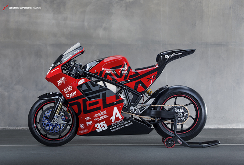 SEPASUKAN pelajar di Universiti Twente, Belanda menghasilkan superbike elektrik, Delta-XE yang mampu bersaing di trek, dibangunkan daripada program Electric Superbike Twente.