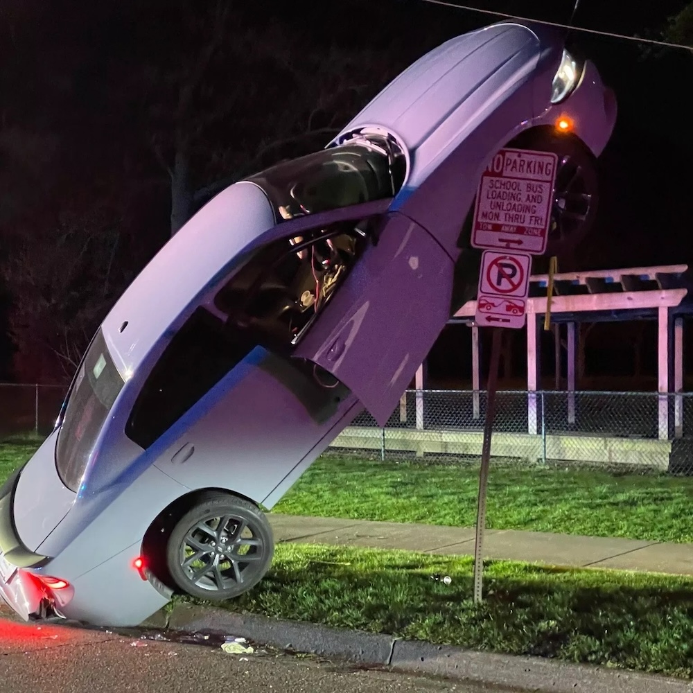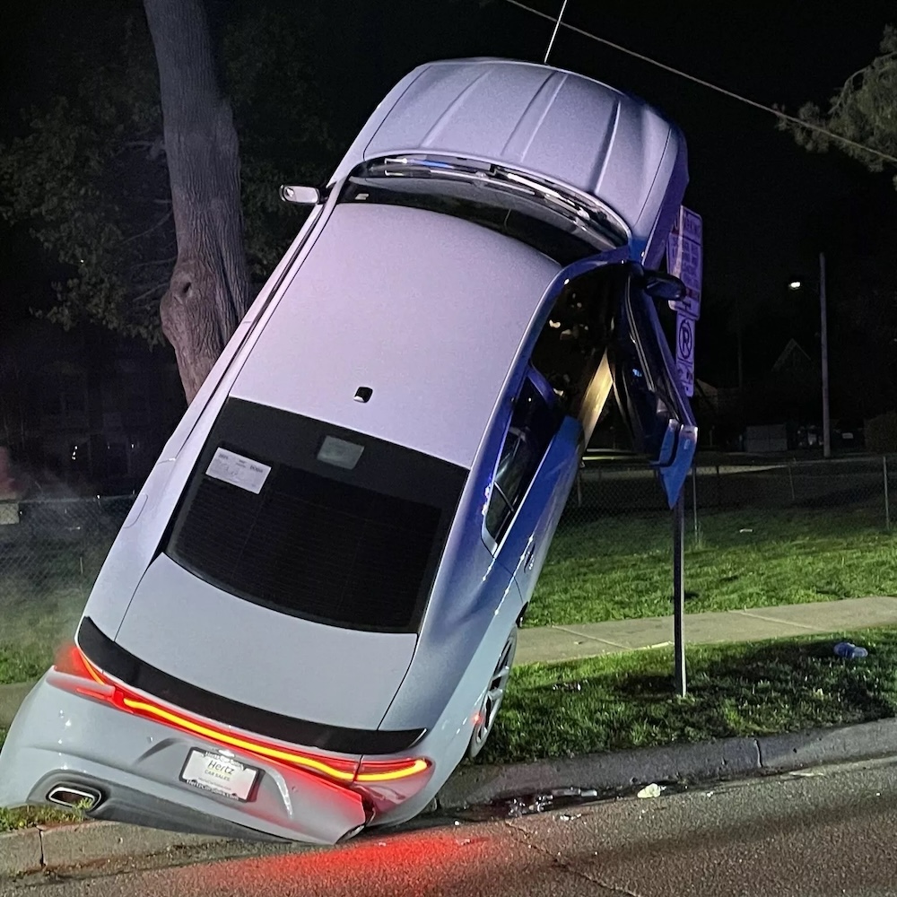 Ini dikatakan punca bagaimana kereta tersebut boleh terbang sebelum mendarar di atas papan tanda tersebut. Tiada sesiapa cedera dalam insiden itu.
