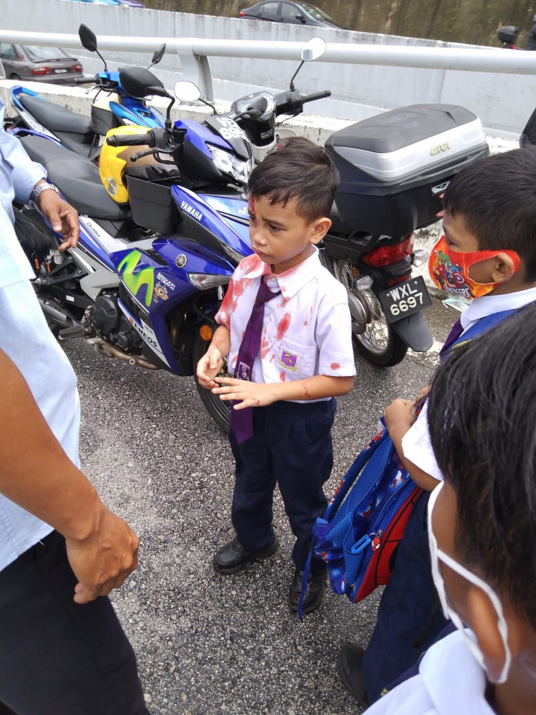 Kemalangan itu menyebabkan tiga murid cedera, manakala arwah ketika itu ditemu dalam keadaan tidak sedarkan diri dan tersepit di kerusi pemandu.