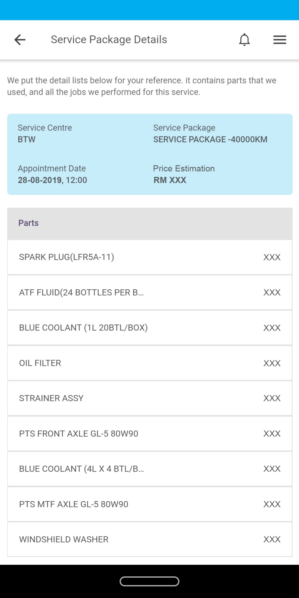 - Maklumat Servis: Pelanggan boleh mendapatkan maklumat pakej servis, alat ganti dan harga anggaran lebih awal.