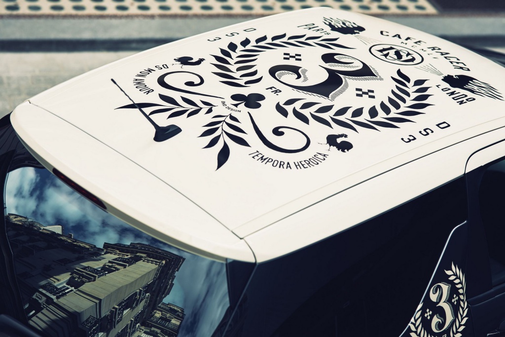 Lencana ‘Cafe Racer’ dapat dilihat pada bonet dan pintu berserta kemasan but dan antena sirip yu dengan pelekat nombor 3 atas bumbung, rim aloi Bellone potongan berlian hitam 17-inci eksklusif dengan Parthenon Cream pada hab tengah dan plat nombor berkrom.