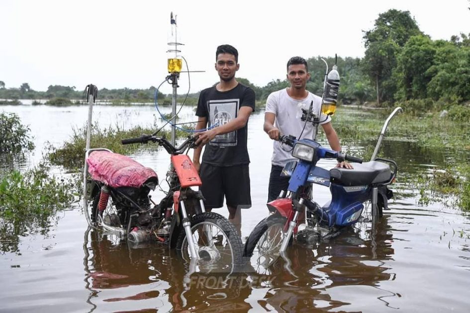 DUA beradik dari Kampung Banggol, Setiu, Terengganu menghasilkan motor banjir dengan mengubah suai motosikal Modenas Kriss 110 dan Honda C70 untuk digunakan sebagai pengangkutan meredah banjir di kampung mereka.