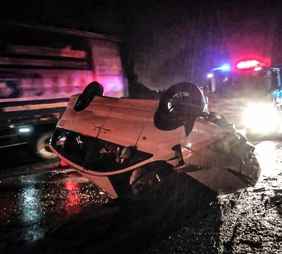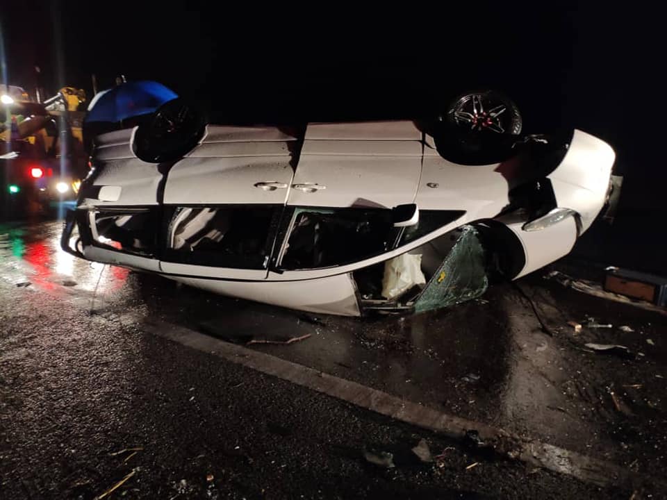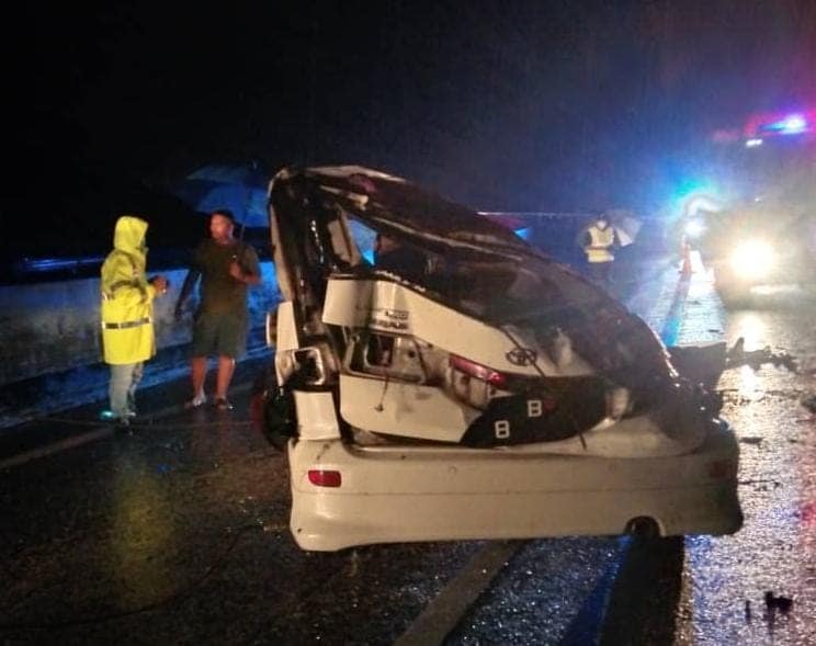 Dalam insiden kira-kira jam 3.33 pagi itu, kenderaan pelbagai guna (MPV) jenis Toyota Estima dilaporkan hilang kawalan atas jalan raya lembap sebelum terbabas.