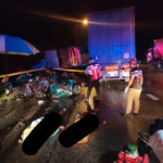 Menurut bomba, mangsa maut ialah pemandu lori kontena, K Gunalan, 45, dan pemandu Proton Wira, Senawi Jelani, 55. Bomba menerima panggilan kecemasan membabitkan dua lori kontena, sebuah treler dan Proton Wira pada jam 4.48 pagi.