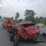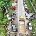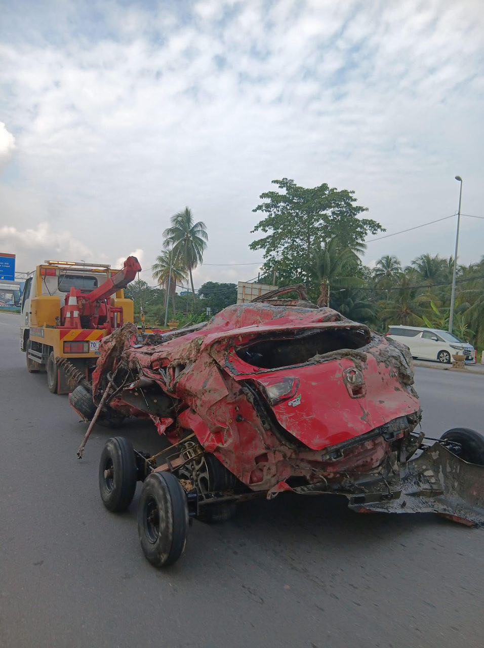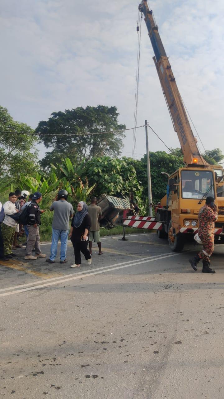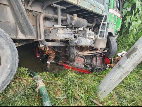 Lori tersebut kemudian terbalik dan menghempap sebuah Perodua Myvi yang dinaiki dua wanita berumur 20-an dan 40-an, serta seorang kanak-kanak perempuan berumur 10 tahun, dipercayai sekeluarga.