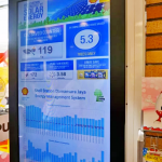 - Papan info elektronik di pintu masuk kedai runcit memaparkan maklumat tentang penggunaan tenaga, air, suhu dan pengurangan karbon bagi menggalakkan inisiatif hijau.