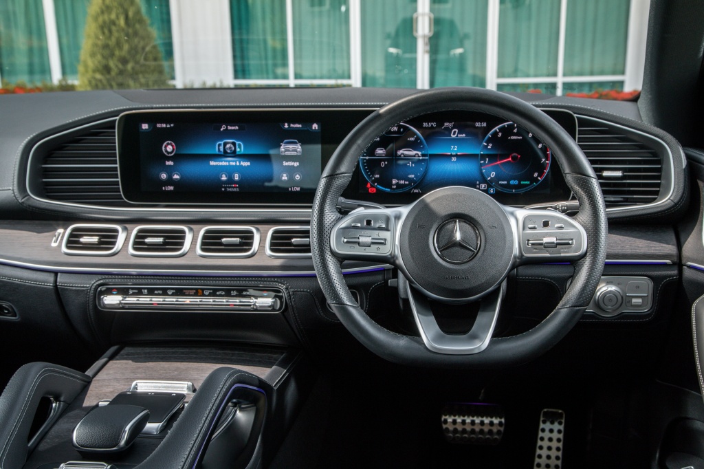 - Penampilan luaran diserlahkan dengan pakej AMG Line, pakej AMG Night, spoiler AMG, lampu depan LED Multibeam, Adaptive Highbeam Assist Plus, rim AMG 22 inci, sistem ekzos prestasi AMG dengan paip kembar, projeksi logo dan cermin suria panorama.
