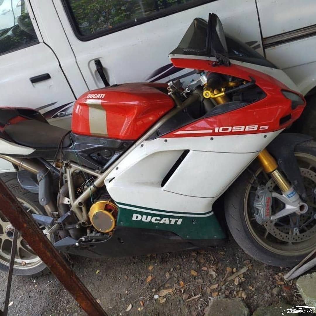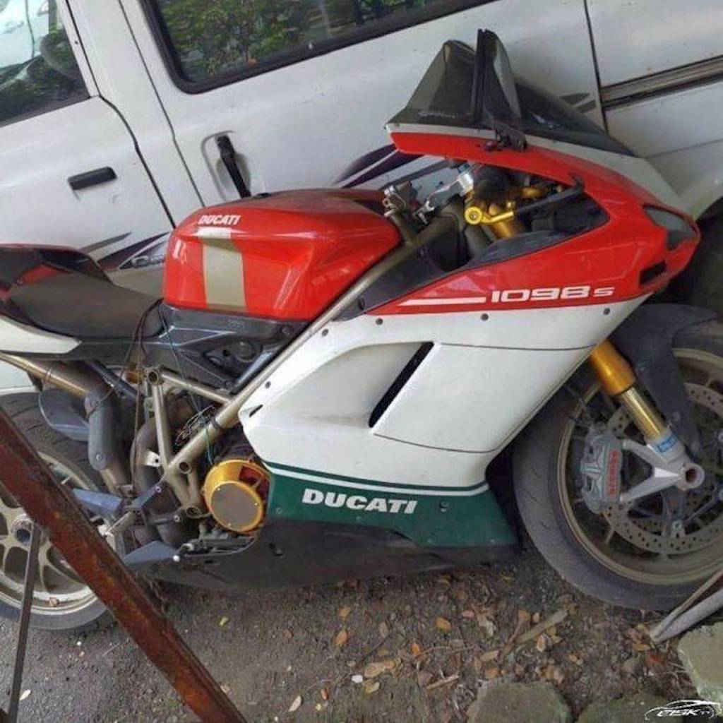 Model motosikal dalam gambar di atas ialah Ducati 1098 S Tricolore yang dikesan di Kochi dalam negeri Kerala, barat daya India. Superbike itu diparkir di satu kawasan terbuka yang khas untuk kenderaan rampasan.
