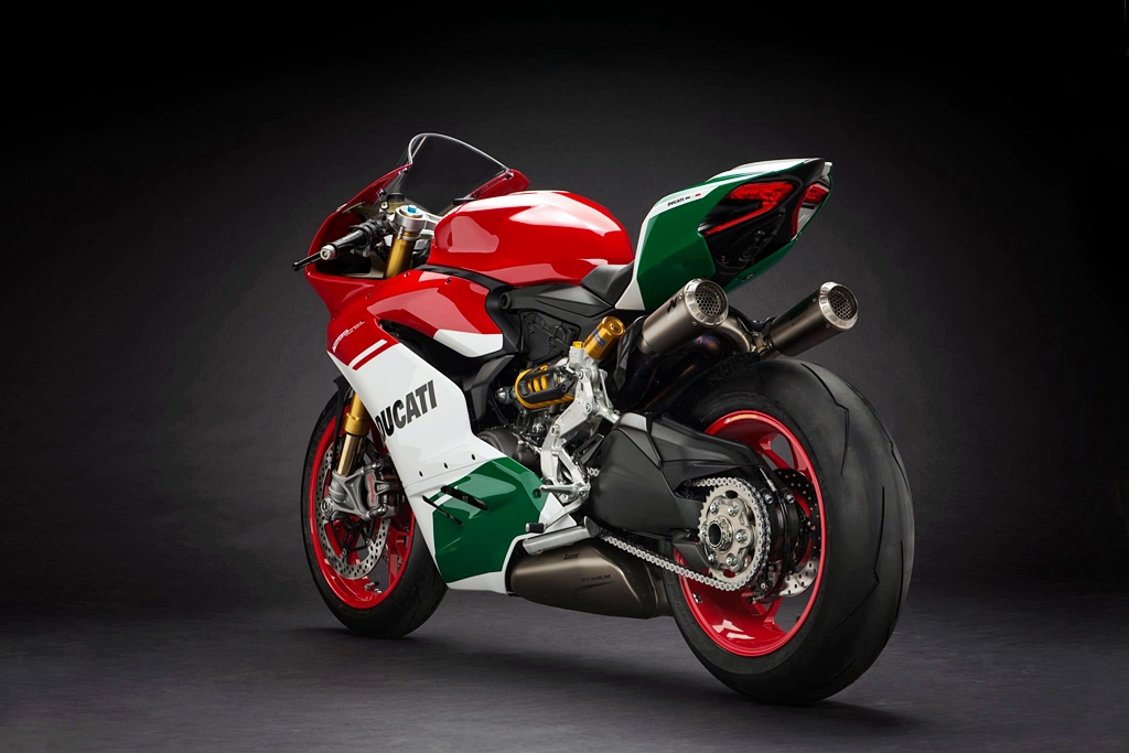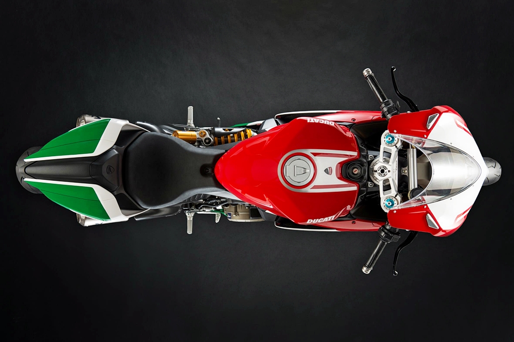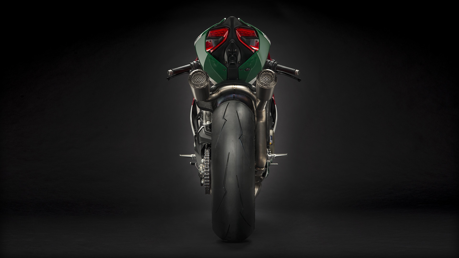 - Menggunakan set lengkap ekzos titanium Akrapovič dengan dua peredam (patuh Euro 4), sama seperti Panigale R yang bersaing dalam Kejuaraan Superbike Dunia (WorldSBK).