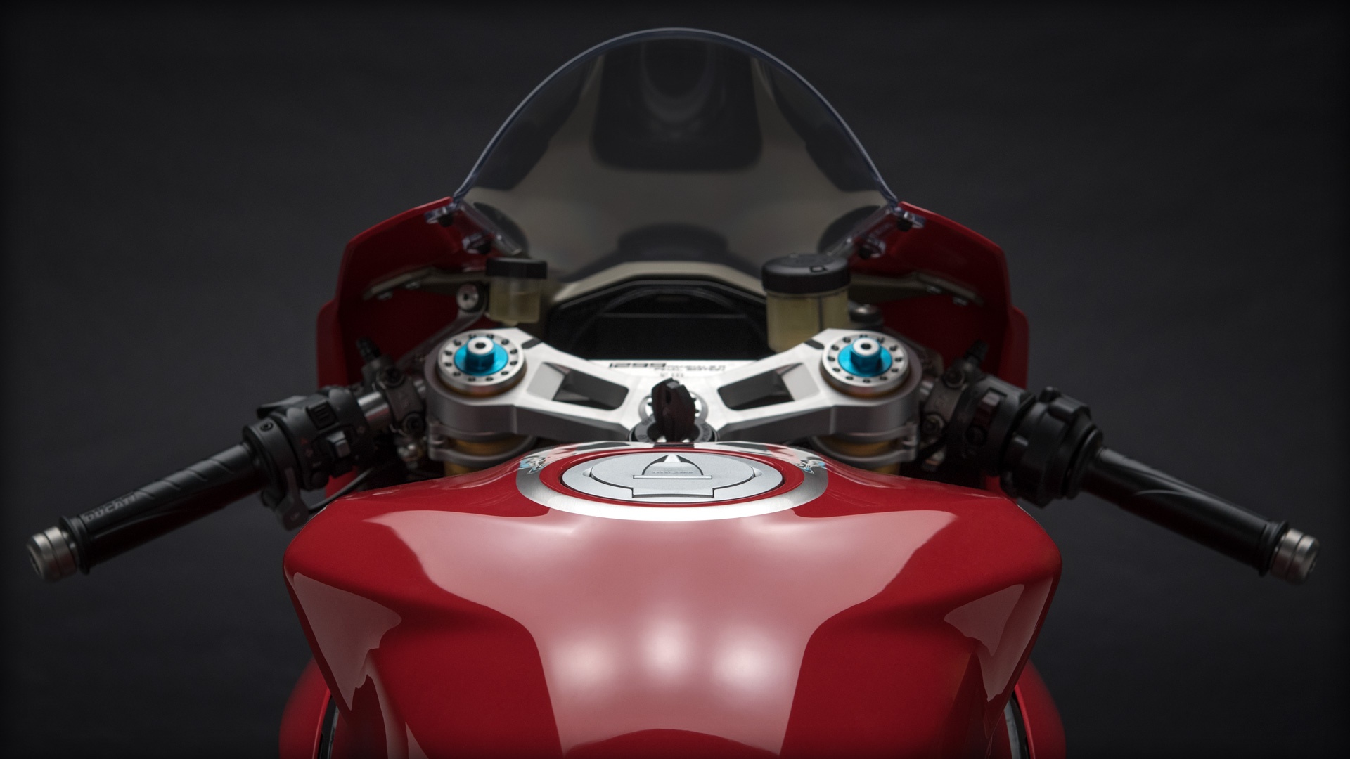 - Setup casis motosikal supersport sama seperti Panigale R yang menggunakan suspensi mekanikal Öhlins dan condong 24º.