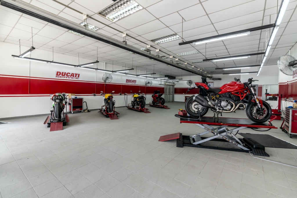 Dikendalikan pengedar rasmi jenama Ducati di Malaysia, Next Bike Sdn Bhd, bilik pameran Ducati itu menyediakan ruang servis seluas 5,009 kaki persegi dan lapan seksyen yang mampu menyelenggara hingga 450 motosikal sebulan.
