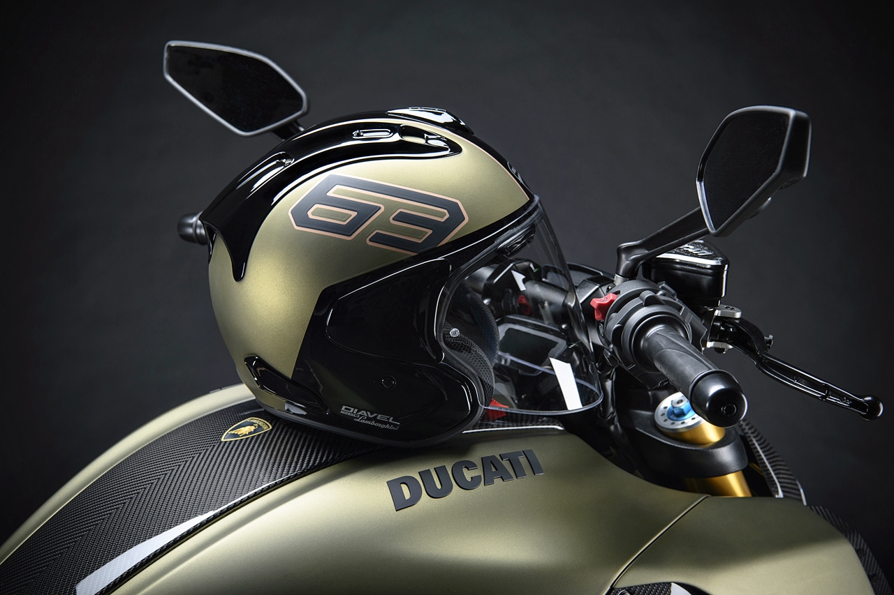 Ciri istimewa lain pemilik Diavel 1260 Lamborghini ialah helmet eksklusif dengan grafik sama seperti motosikal, juga sentuhan Centro Stile Ducati.