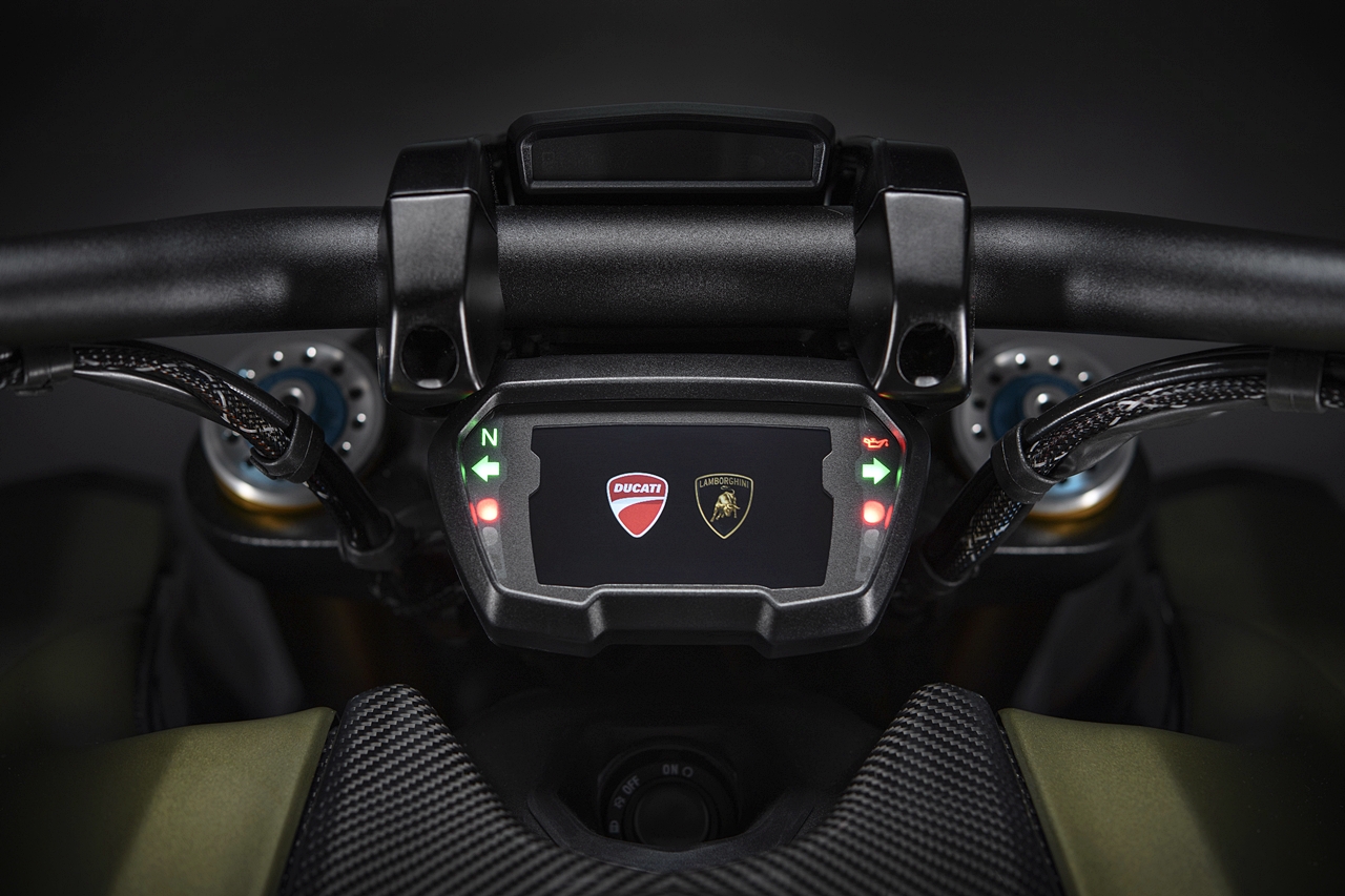 Juga menarik ialah grafik pengenalan kluster instrumen yang memaparkan logo Ducati dan Lamborghini berserta siluet Diavel Lamborghini. Terasa seperti memiliki Ducati dan Lamborghini sekali gus!