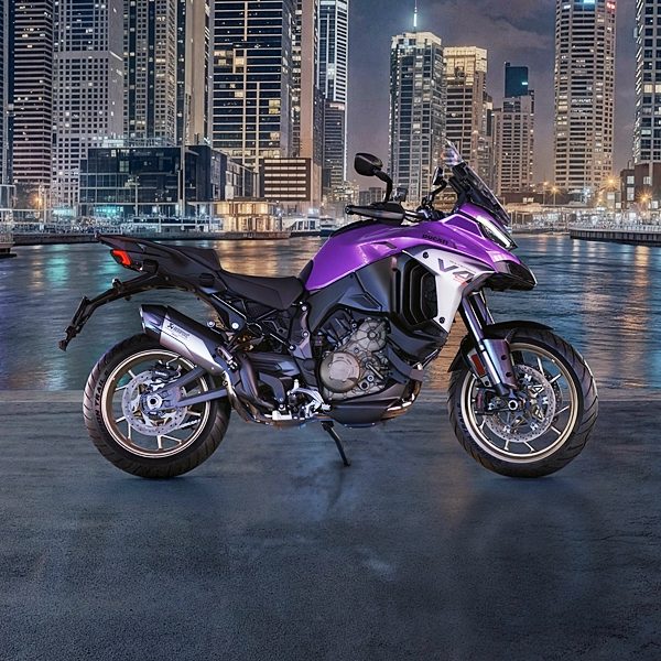 Beberapa warna ikonik Ad Personam Lamborghini juga ditawarkan dalam konfigurator Multistrada V4, termasuk Viola Pasifae (ungu metalik), Arancio Xanto (jingga terang), Giallo Belenus (kuning terang), Blu Uranus (biru terang) dan Verde Scandal (hijau terang).