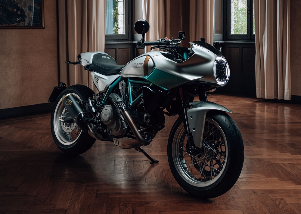 Cafe racer itu adalah tribut kepada model ikonik Ducati 750 Super Sport Desmo yang pernah mencatatkan sejarah besar dalam dunia perlumbaan motosikal berasaskan pengeluaran.